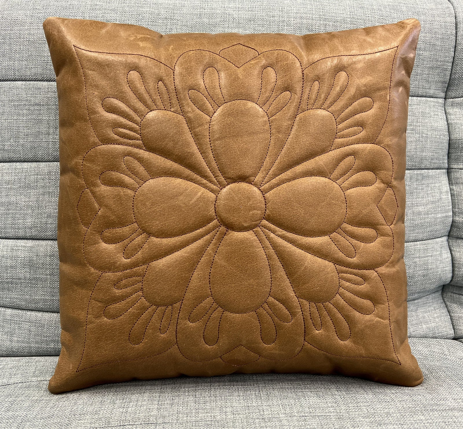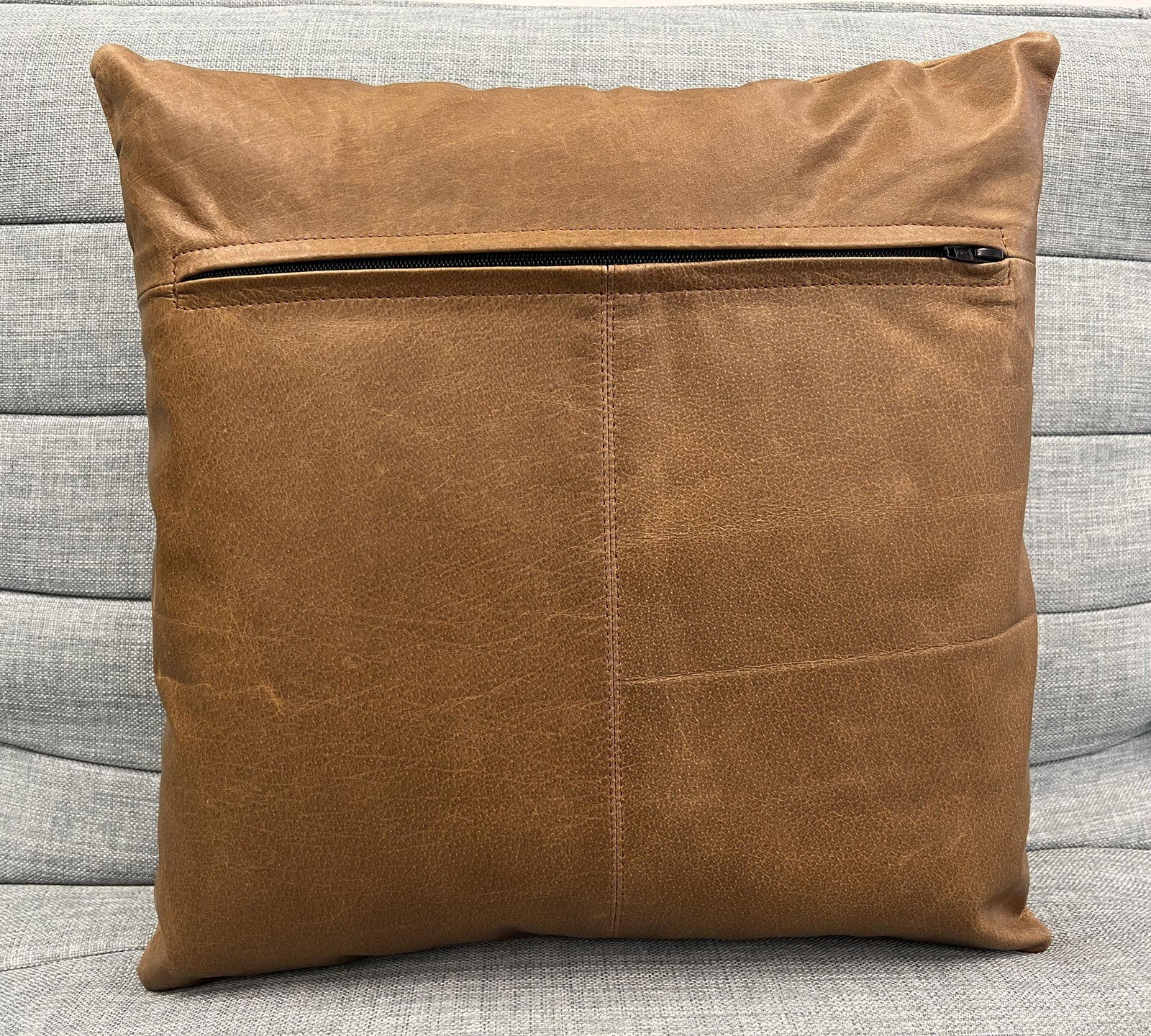 - 2 x Genuine 100% Embroidery Brown Vintage Leather Sofa Cushion Covers Home Decor