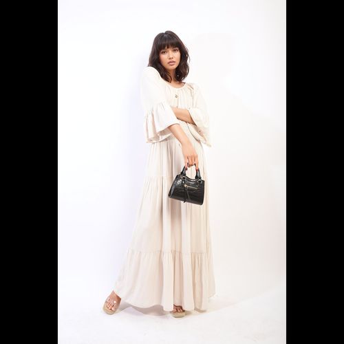 Embrace the allure of the Leah Ruffle Hem Sleeve Shirred Waist Tiered Maxi Dress and let your style flourish in a celebration of beauty, elegance, and unparalleled femininity ššø