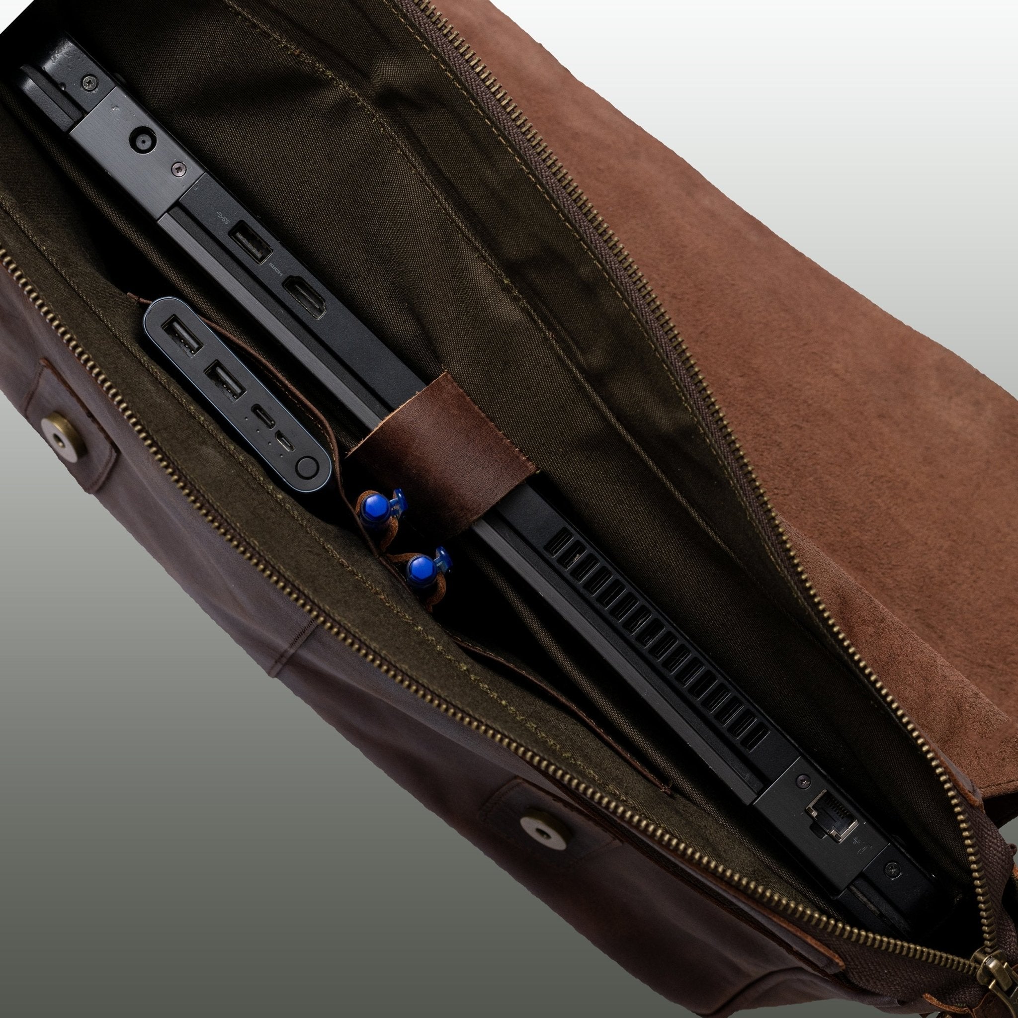 - With two Front Strap Buckles with an easy Snap Button closure and easy access, the messenger opens with a large Flap.