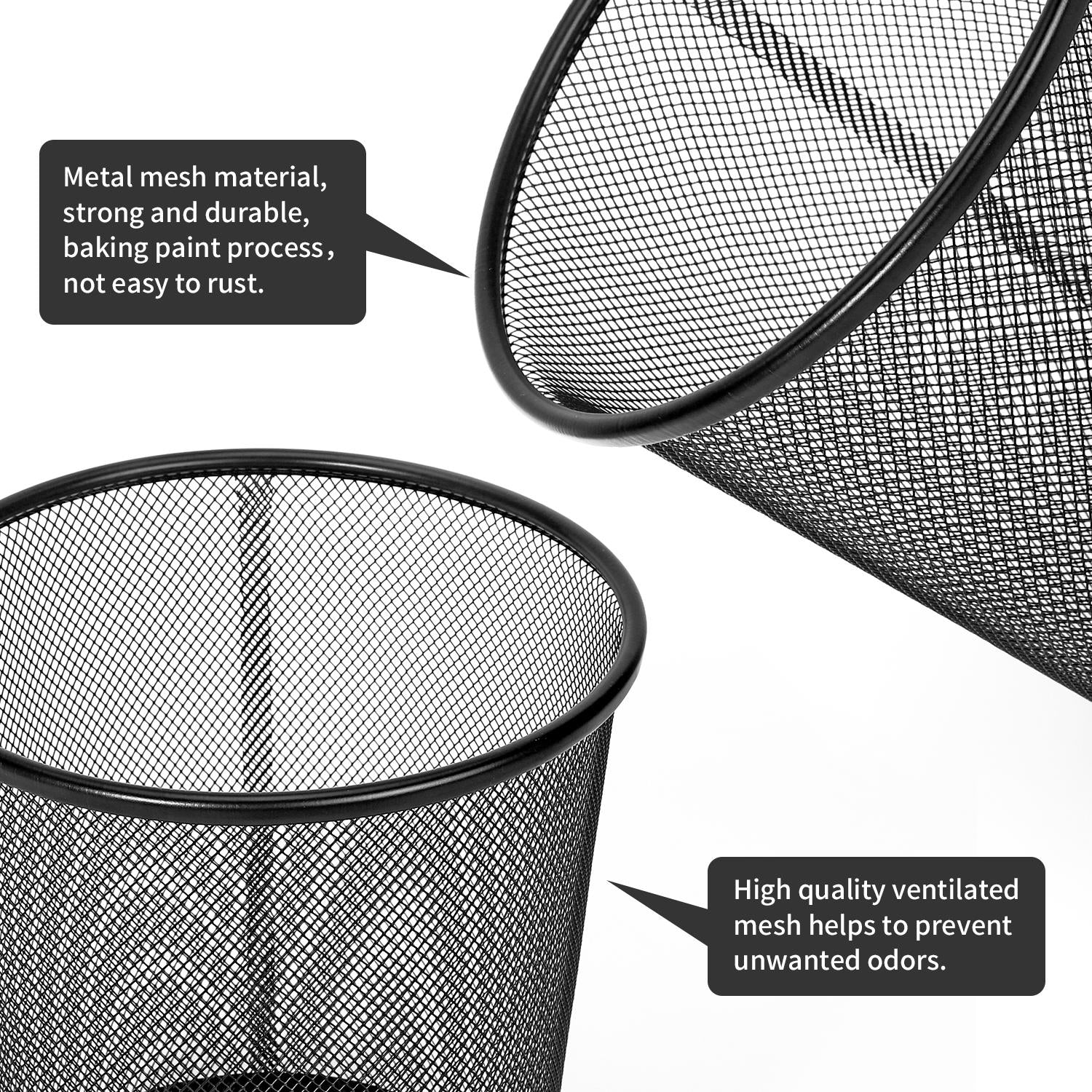 Introducing the Vinsani Round Mesh Trash Can - a perfect blend of simplicity and style! This set includes two lightweight, metal waste baskets that embody a minimalist and modern design, making them an ideal addition to numerous settings such as: