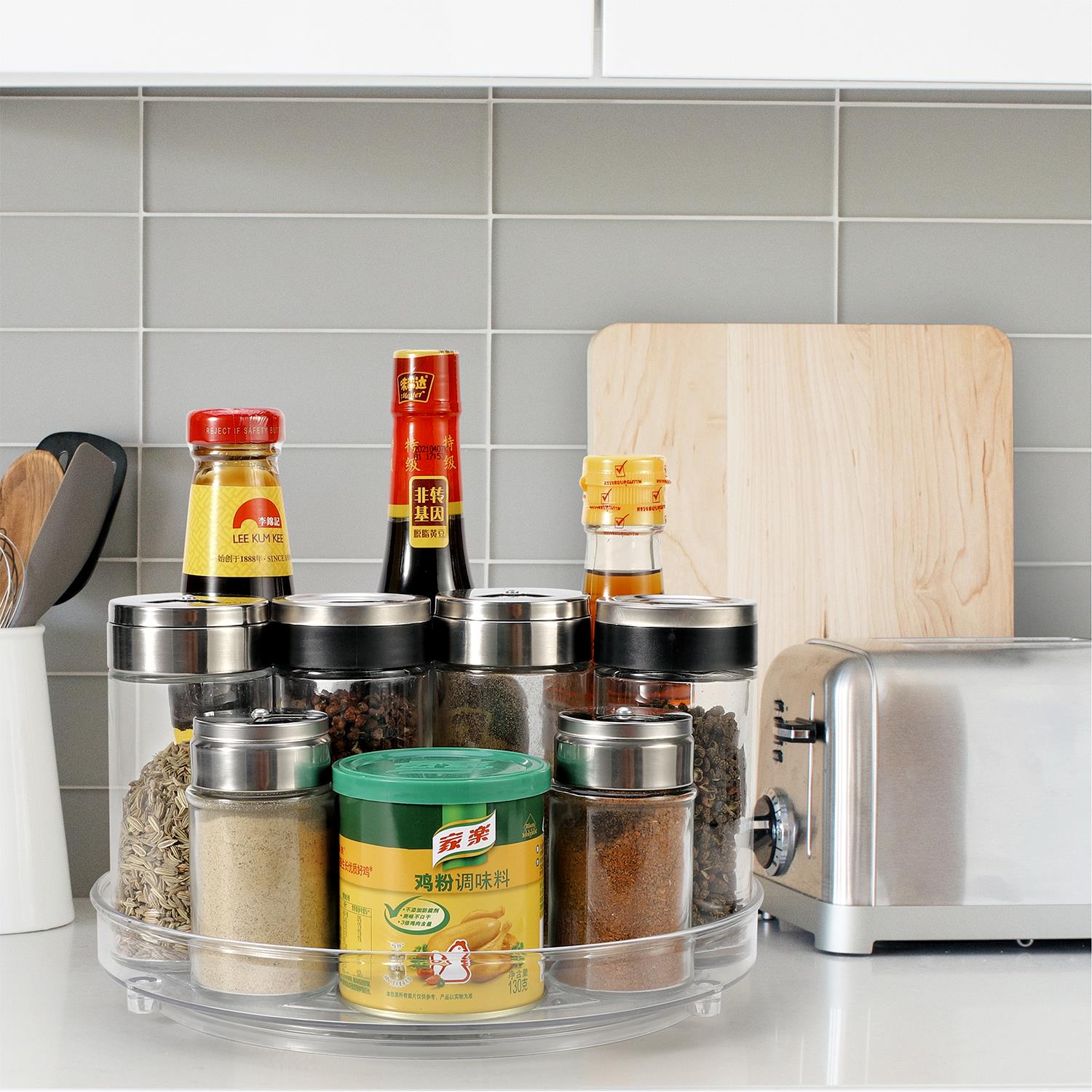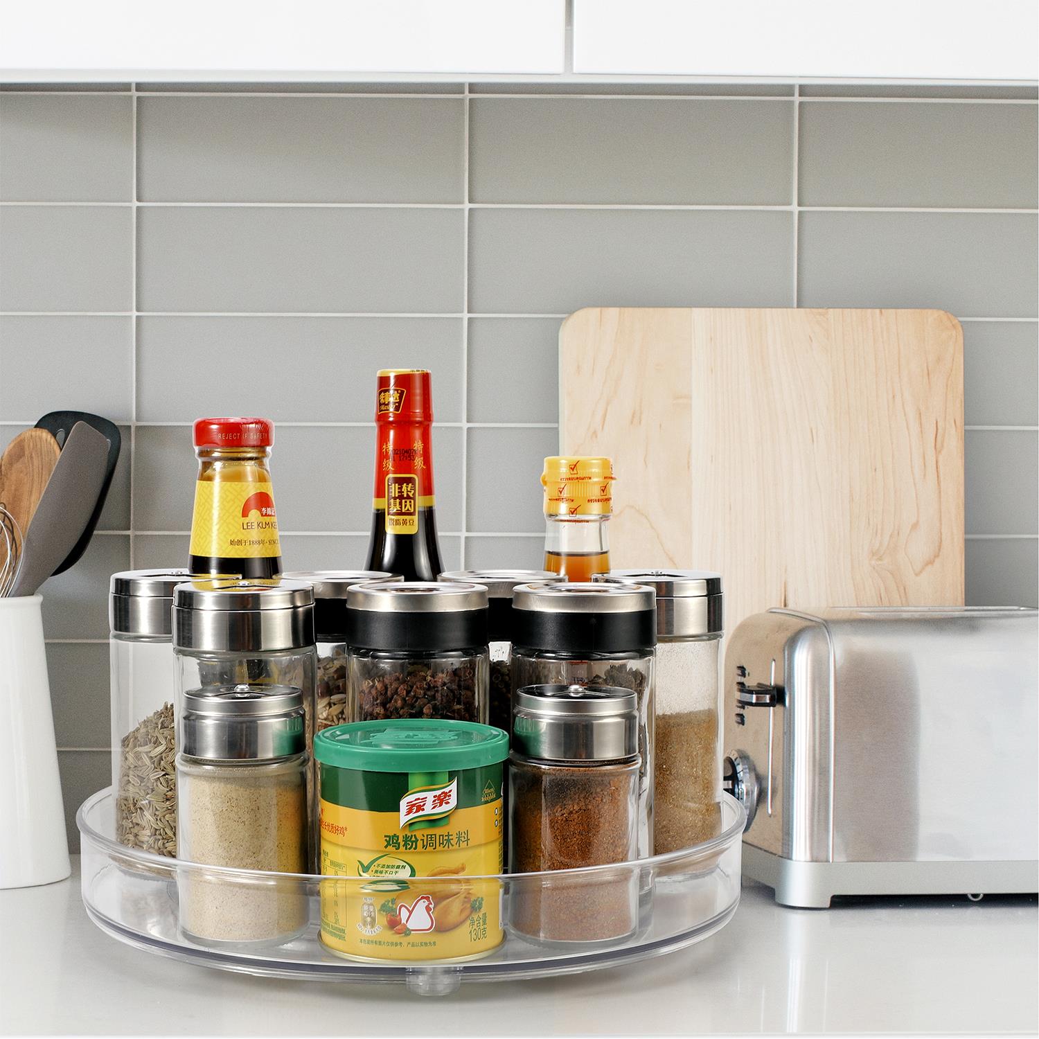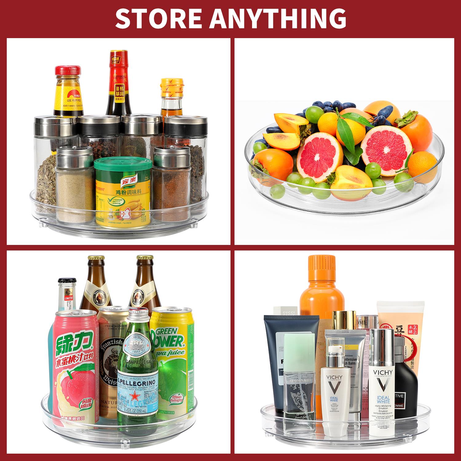 Space Saver: Our transparent turntable organizer is the perfect solution to maximize your storage space while maintaining an orderly and tidy home. It's versatile enough to enhance organization throughout your kitchen, bathroom, living room, dressing table, dining table, cabinets, countertops, pantries, cupboards, and even in the fridge!