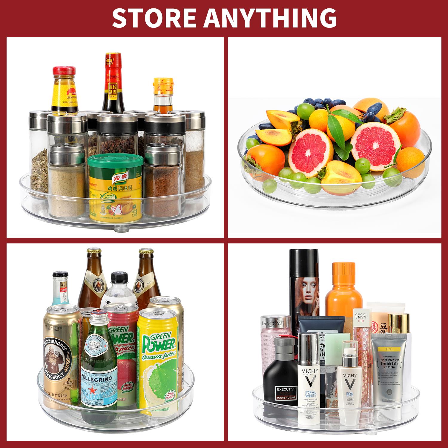 Store Anything: With a wide capacity for storage, this turntable organizer is ideal for holding everything from condiment bottles and drinks to snacks, fruits, makeup, and various other accessories.