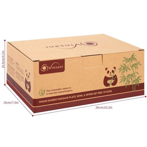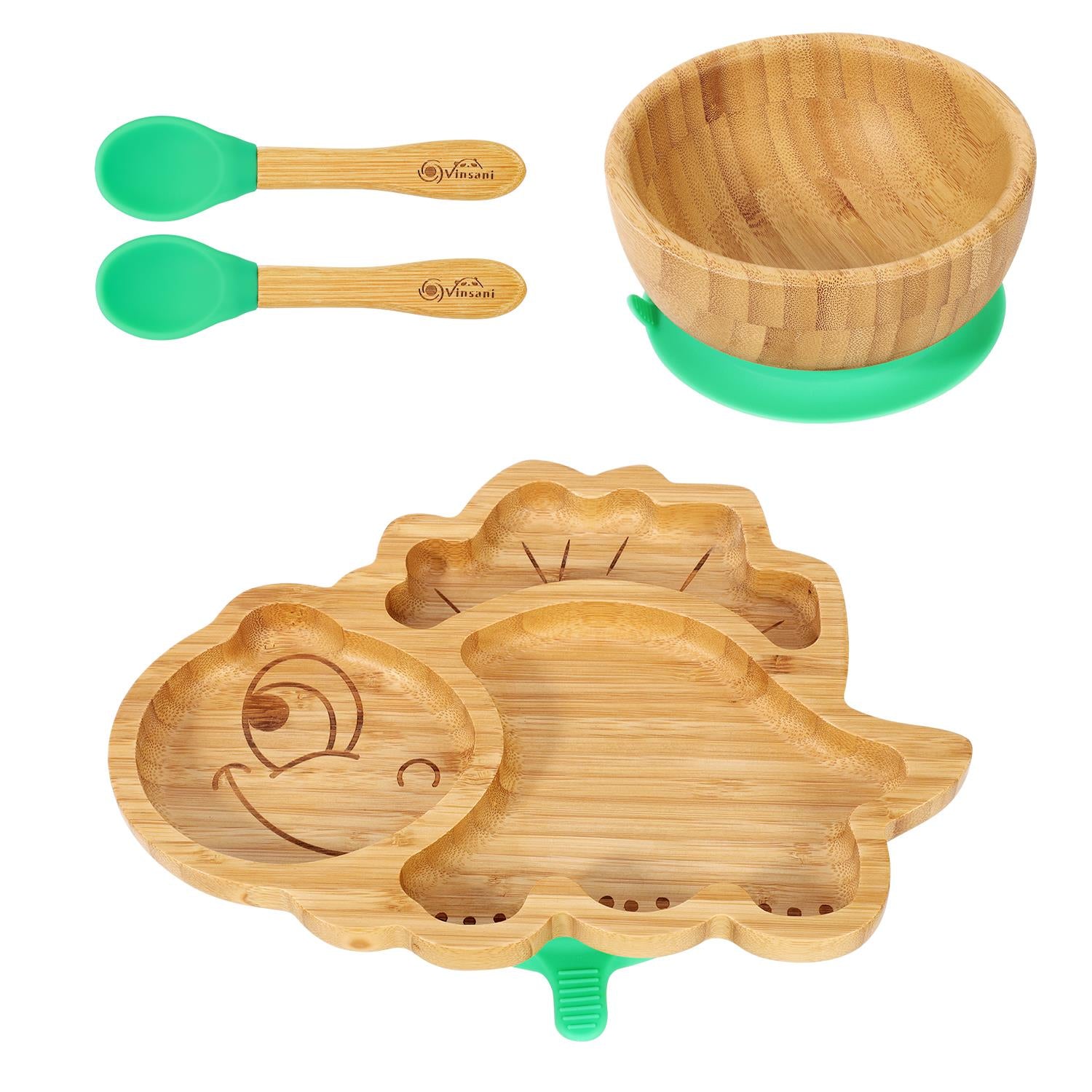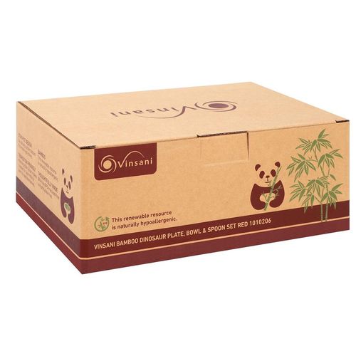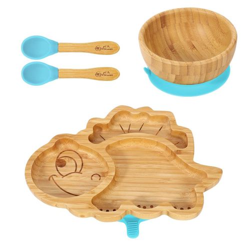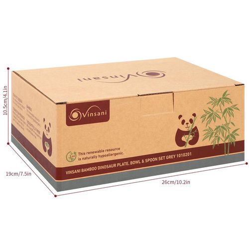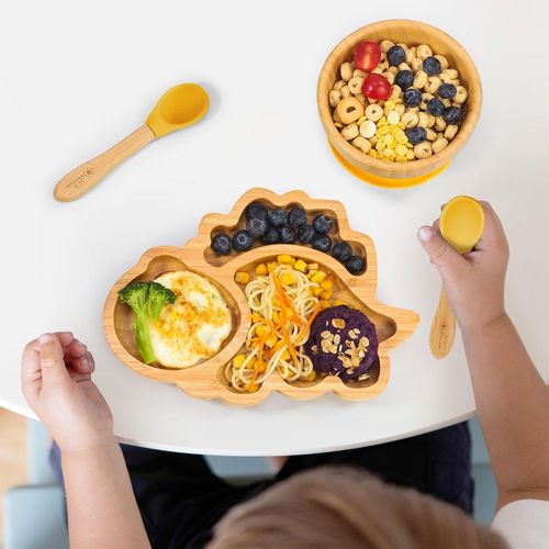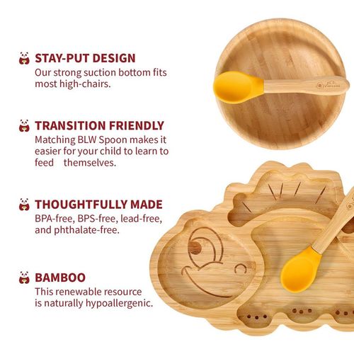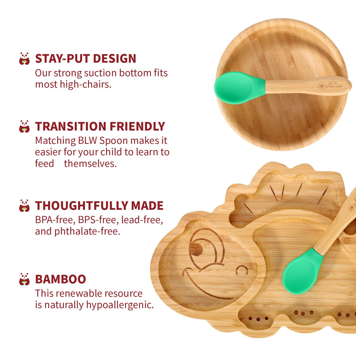 VINSANI Bamboo Dinosaur Plate, Bowl & Spoon Set