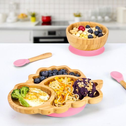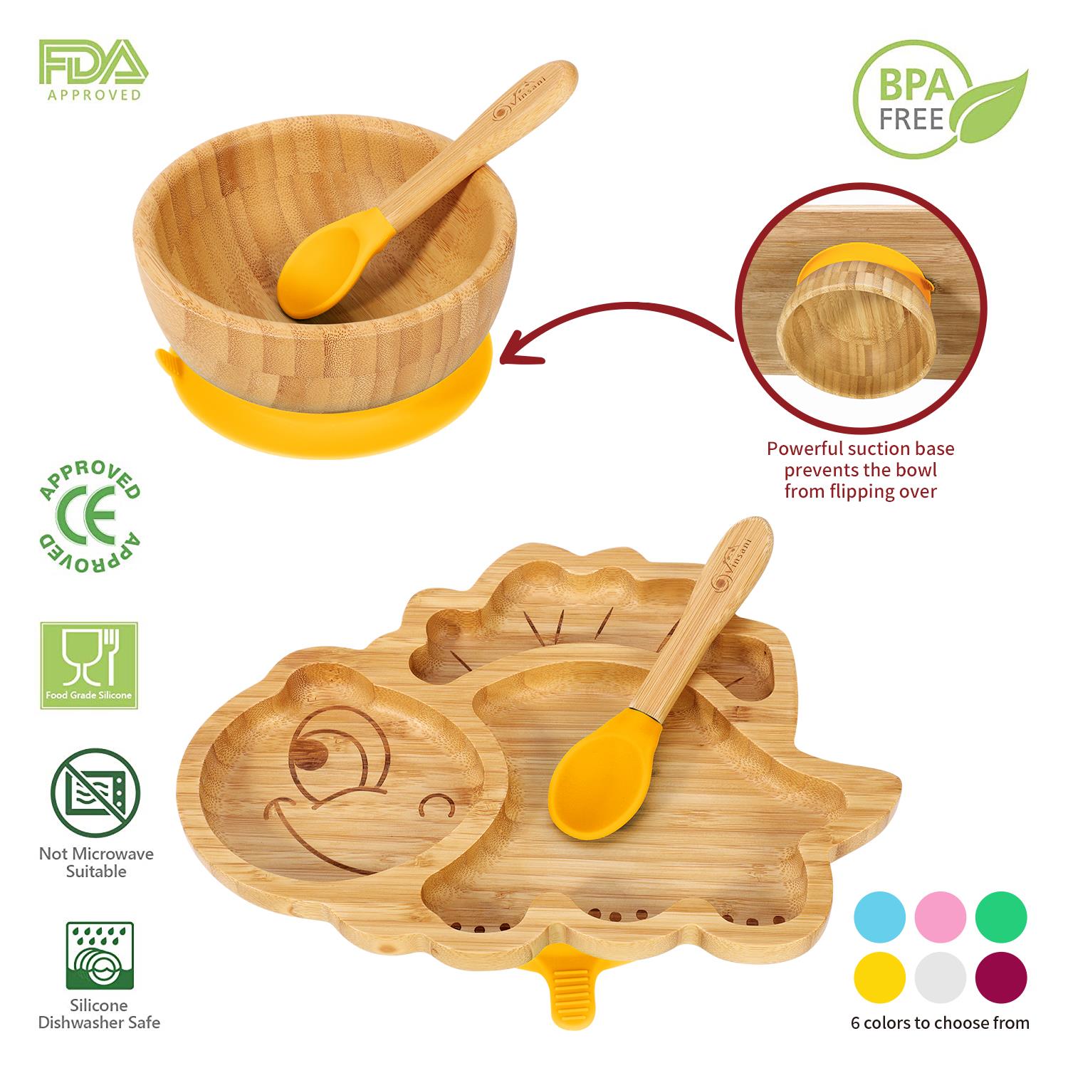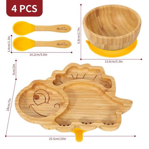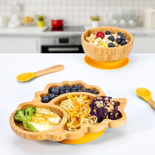 - All-Natural Bamboo: Crafted from hypoallergenic bamboo and food-grade silicone, this set is free from harmful chemicals such as BPA and phthalates, ensuring a safe dining experience for your child.