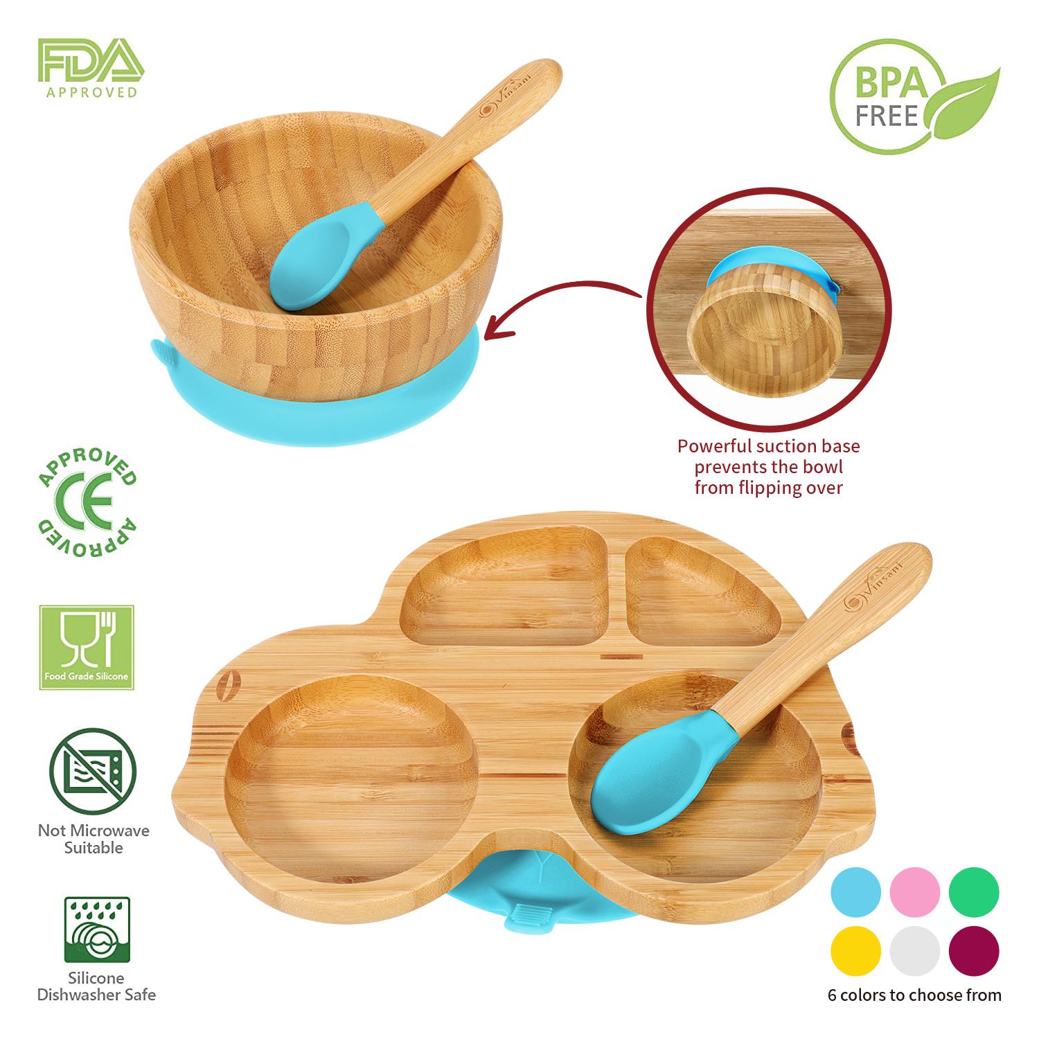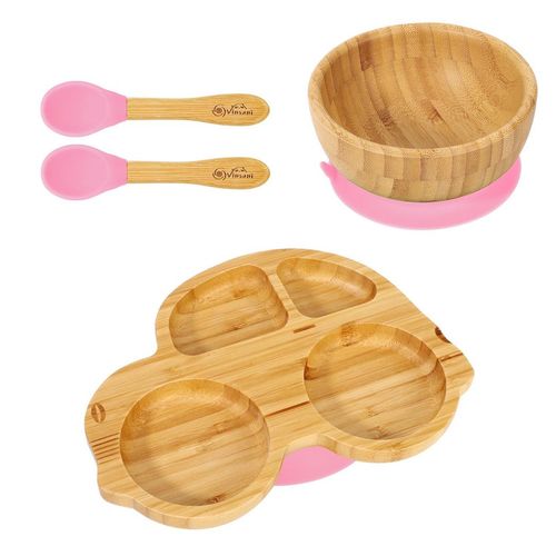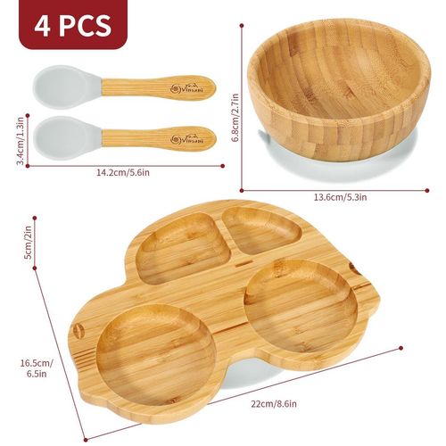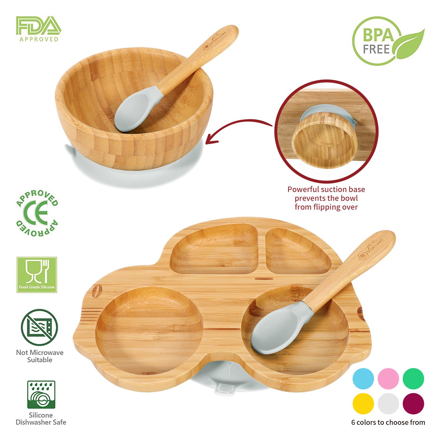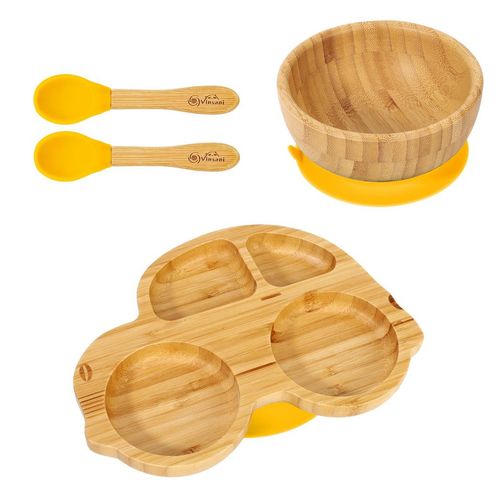 VINSANI Bamboo Car Plate, Bowl & Spoon