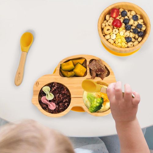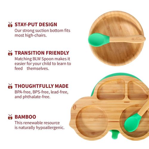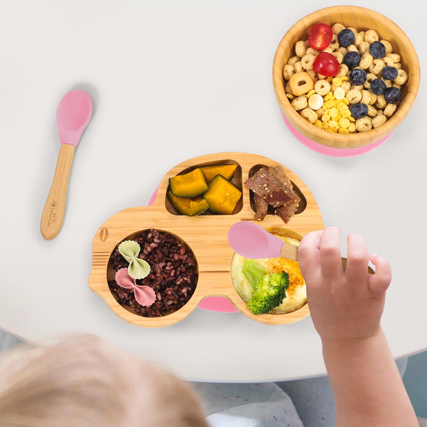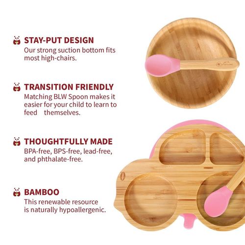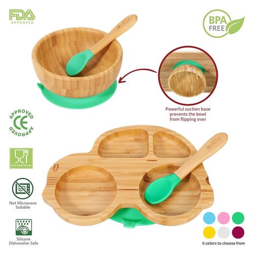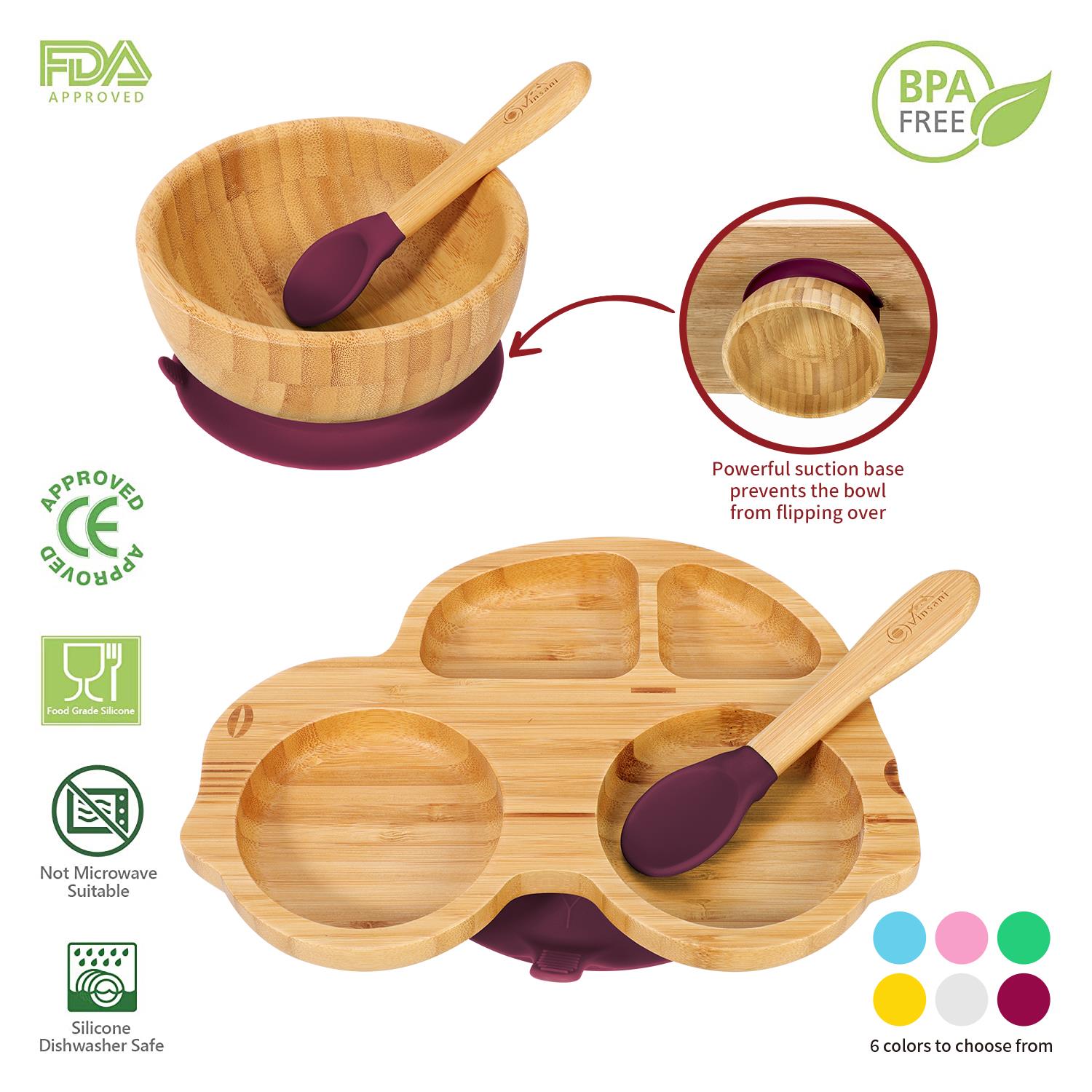 VINSANI Bamboo Car Plate, Bowl & Spoon