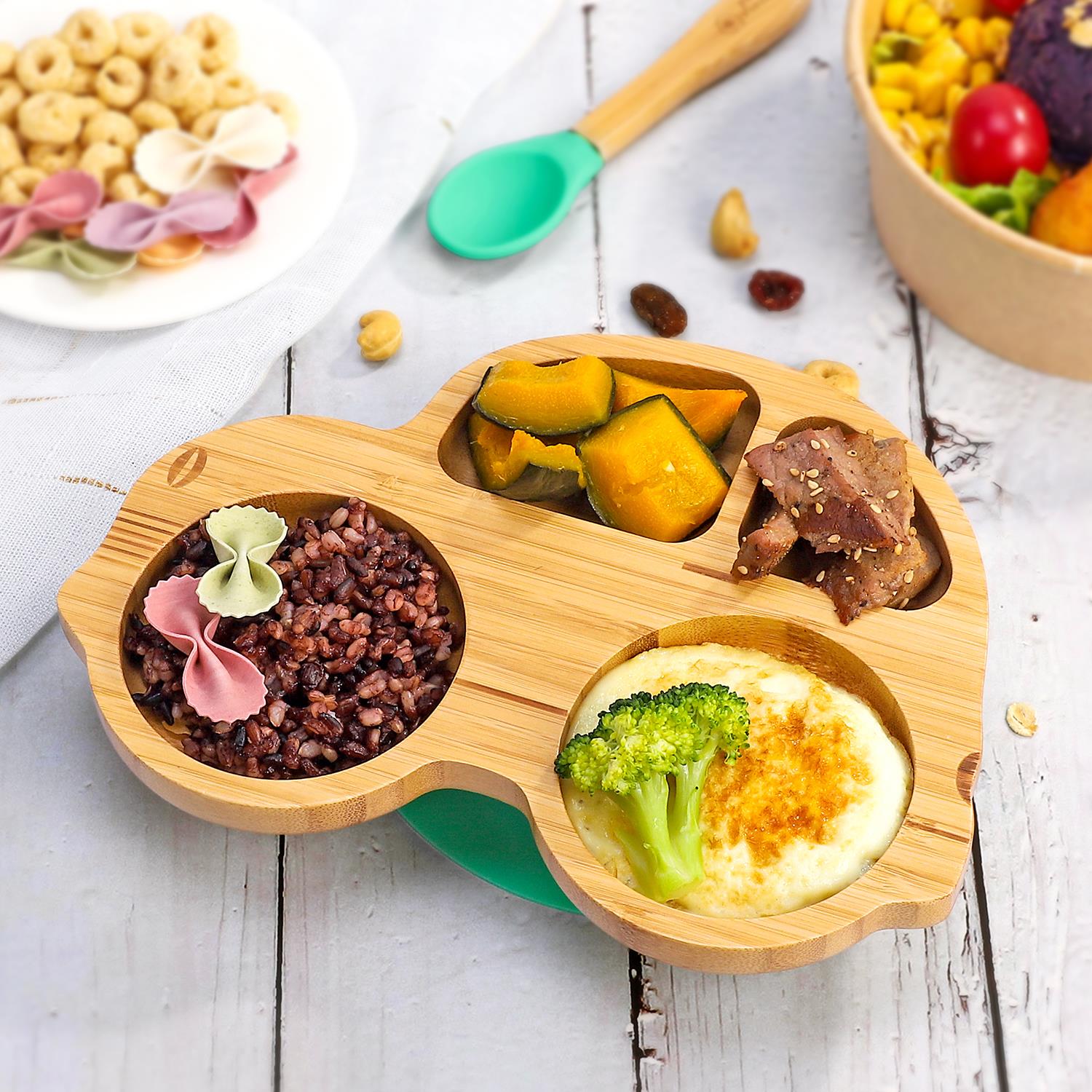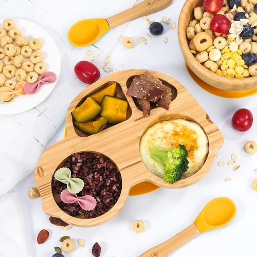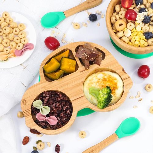 4-SECTIONED PLATE: This set includes a thoughtfully designed plate, bowl, and two spoons. The 4-sectioned plate is ideal for serving multiple food groups at once, making it easier for parents to encourage weaning and prepare balanced meals for their little ones.