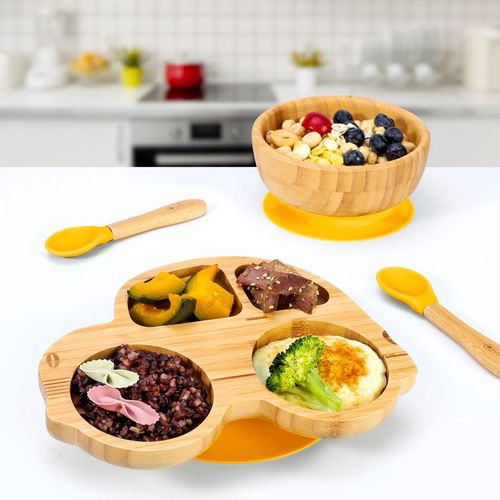 ALL-NATURAL BAMBOO: Crafted from high-quality, hypoallergenic bamboo and food-grade silicone, this dinnerware set ensures that your child is protected from harmful substances such as BPA, phthalates, and other toxins, making mealtime safe and enjoyable.