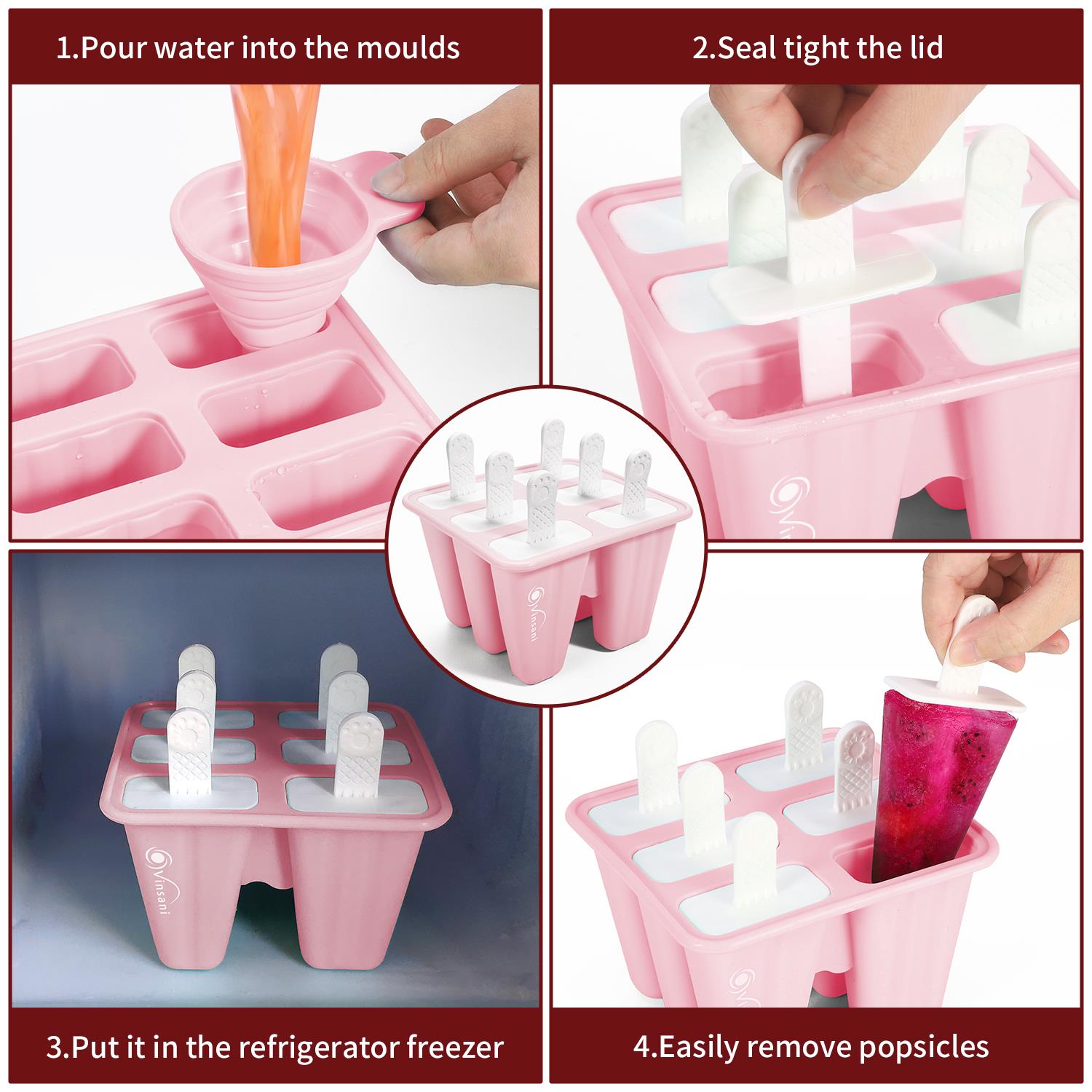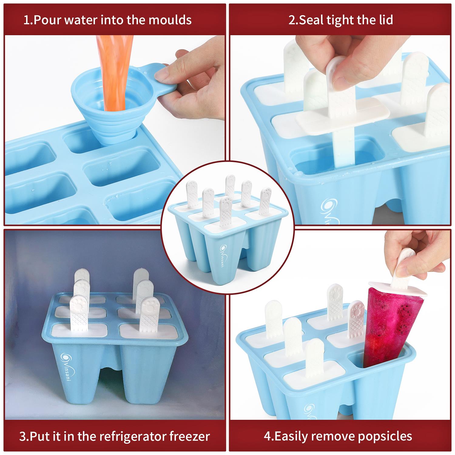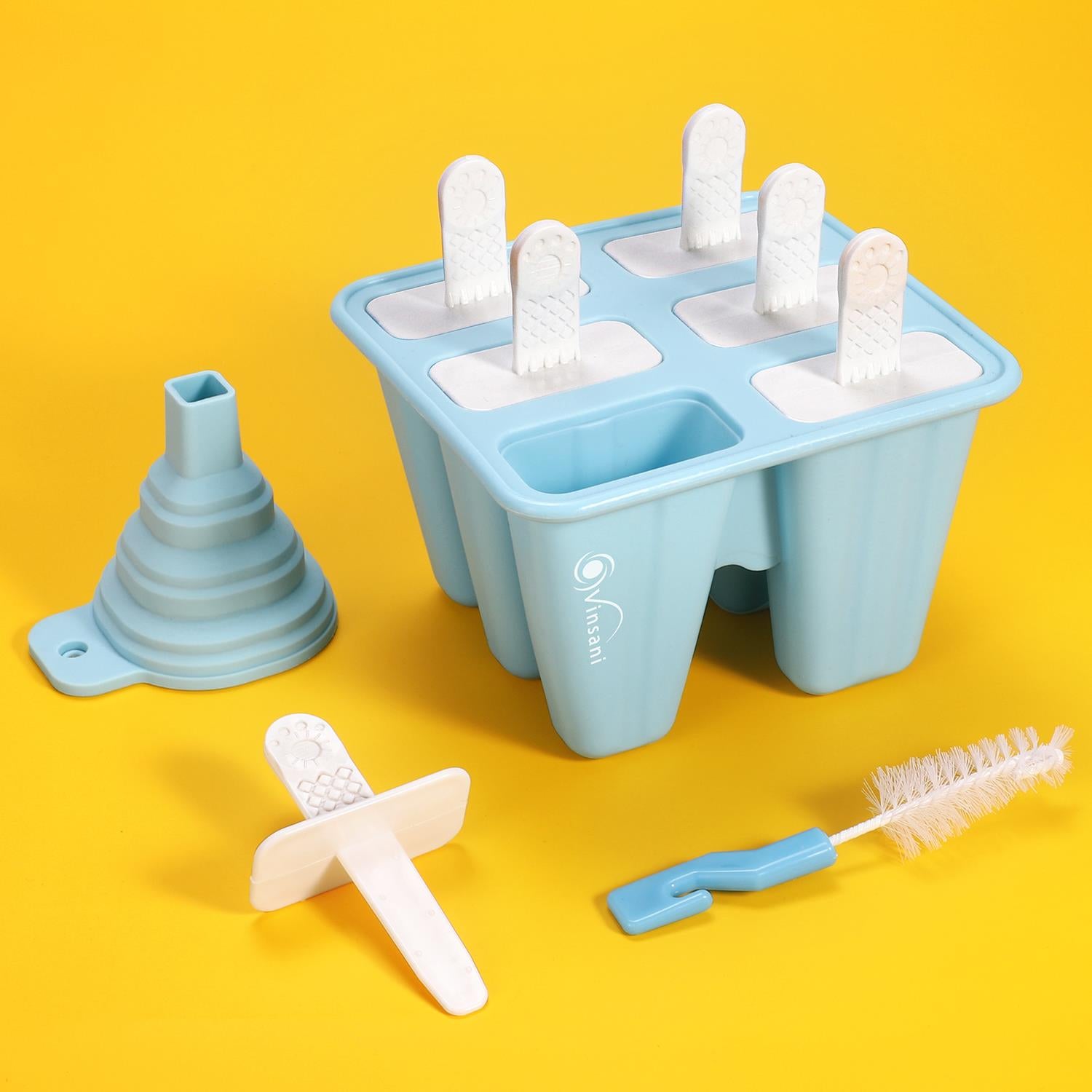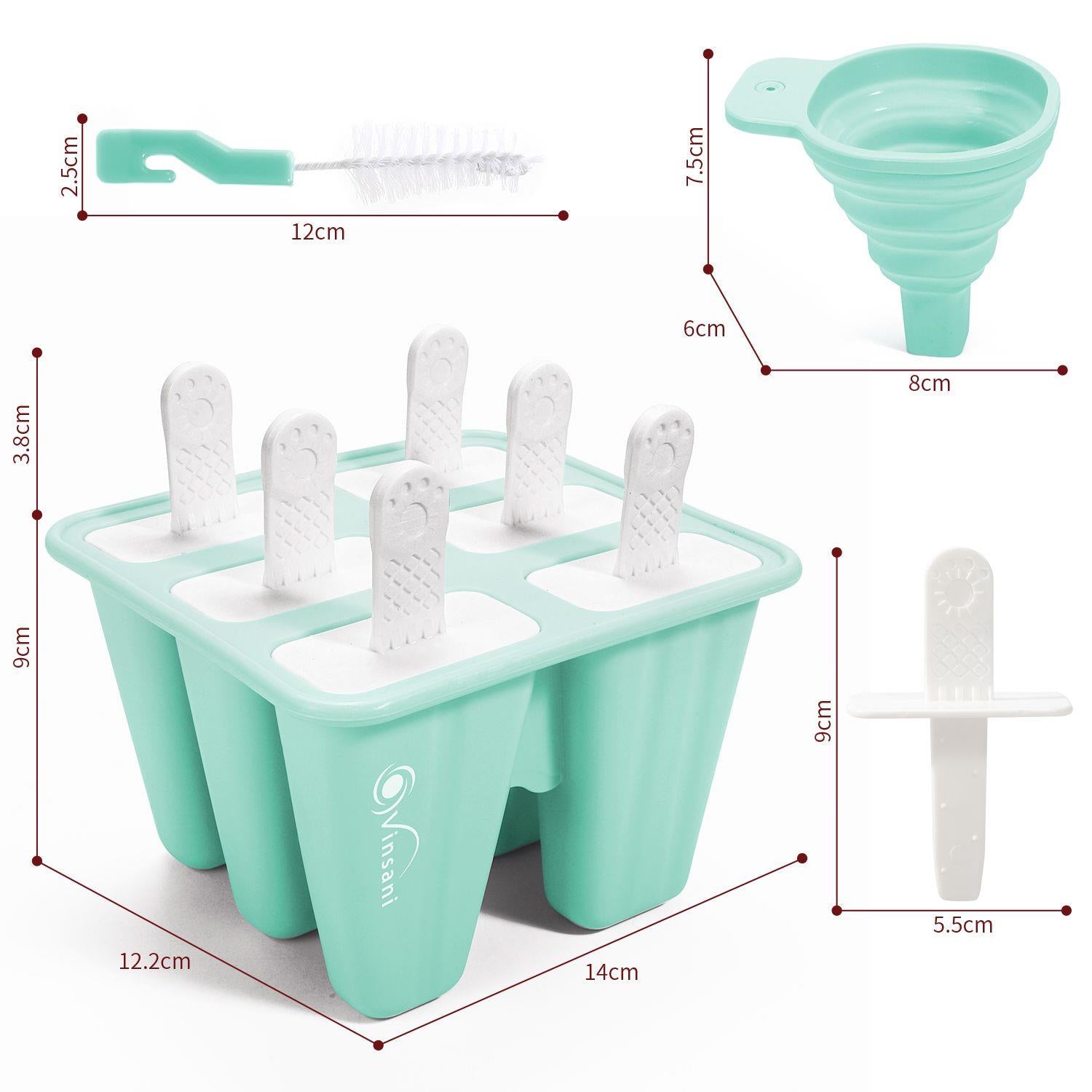 - Set Includes: 1 x 6 cavity popsicle mould, 1 funnel for easy filling, and 1 cleaning brush for hassle-free maintenance.