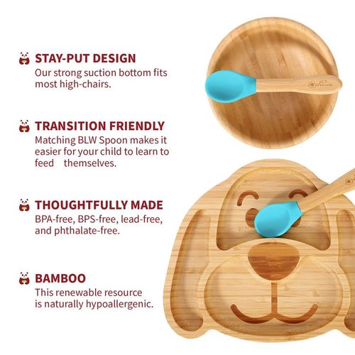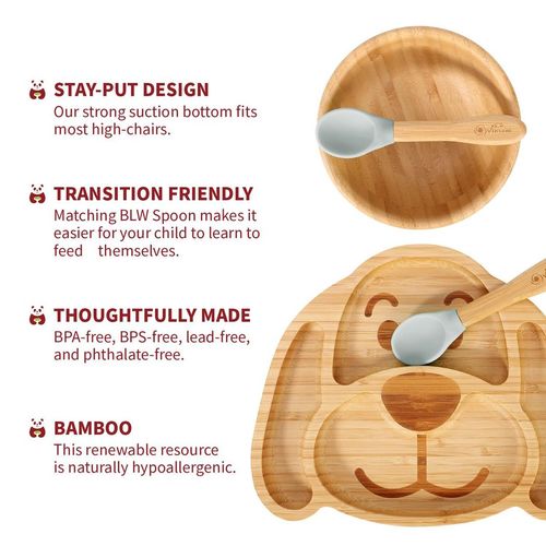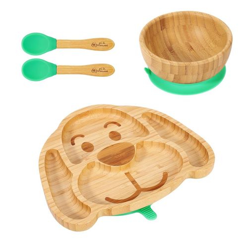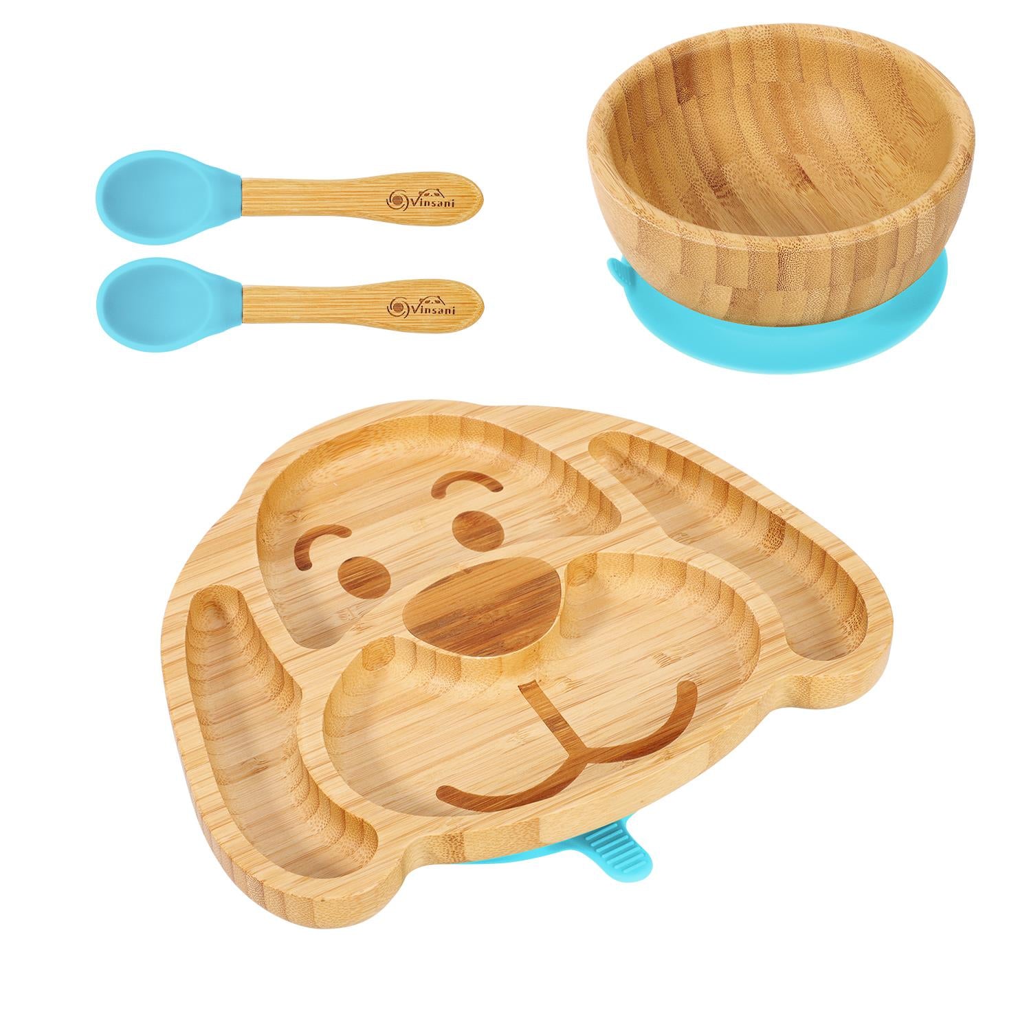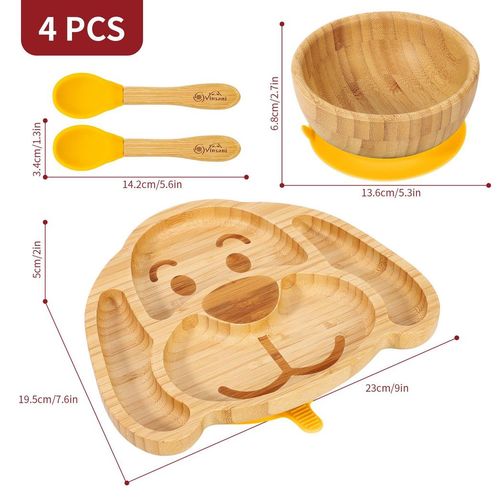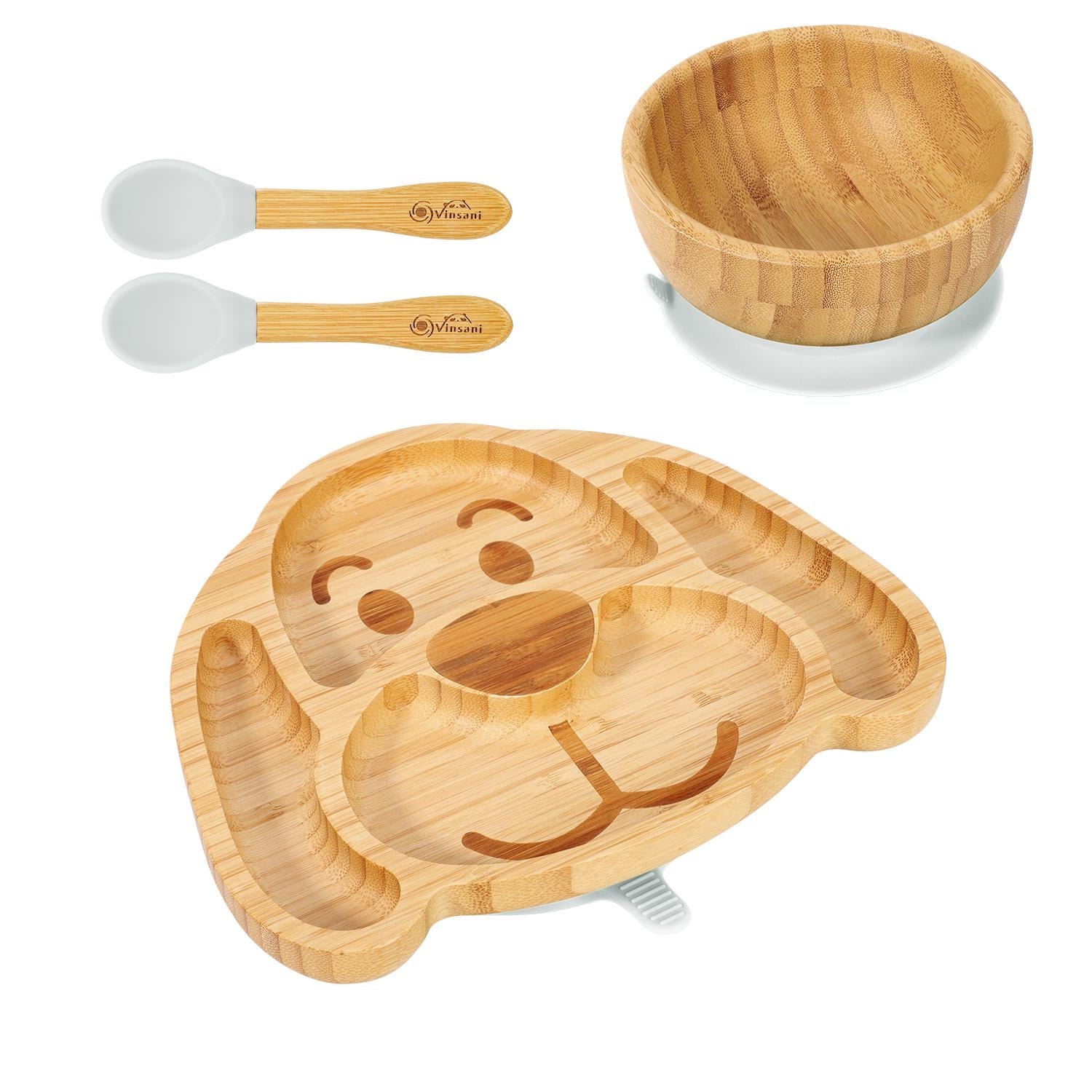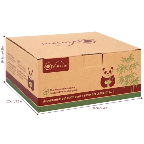 VINSANI Bamboo Dog Plate, Bowl & Spoon Set