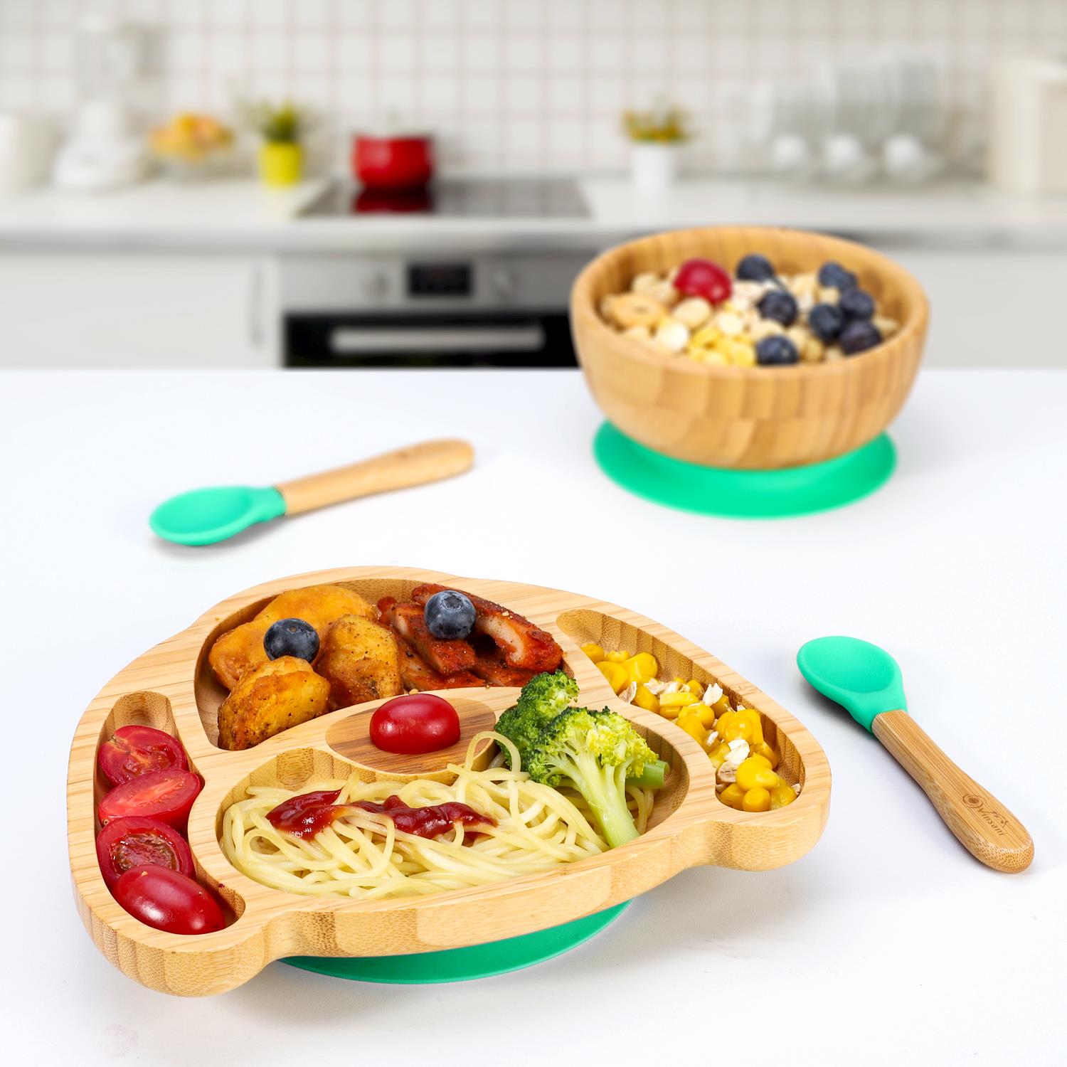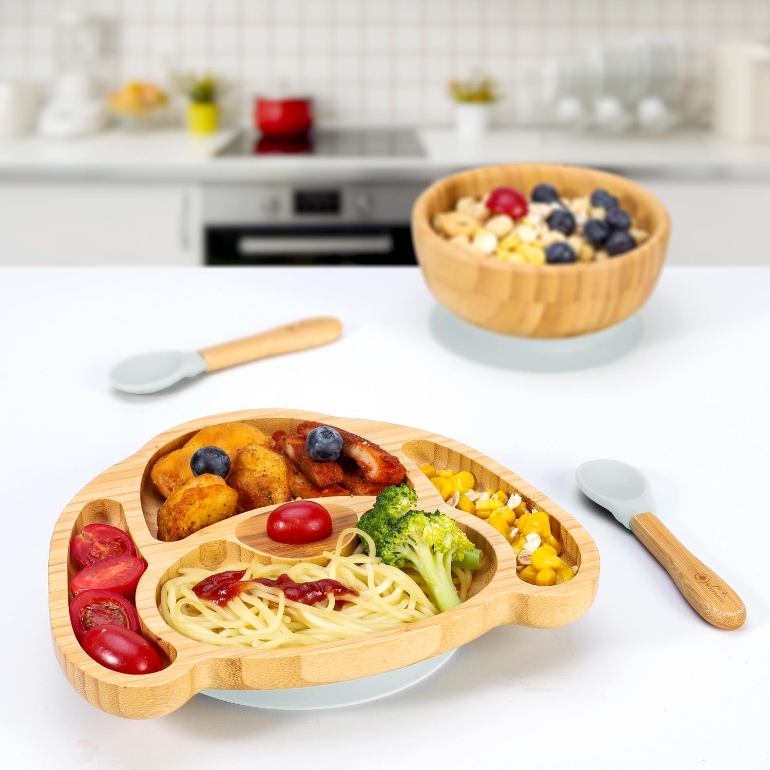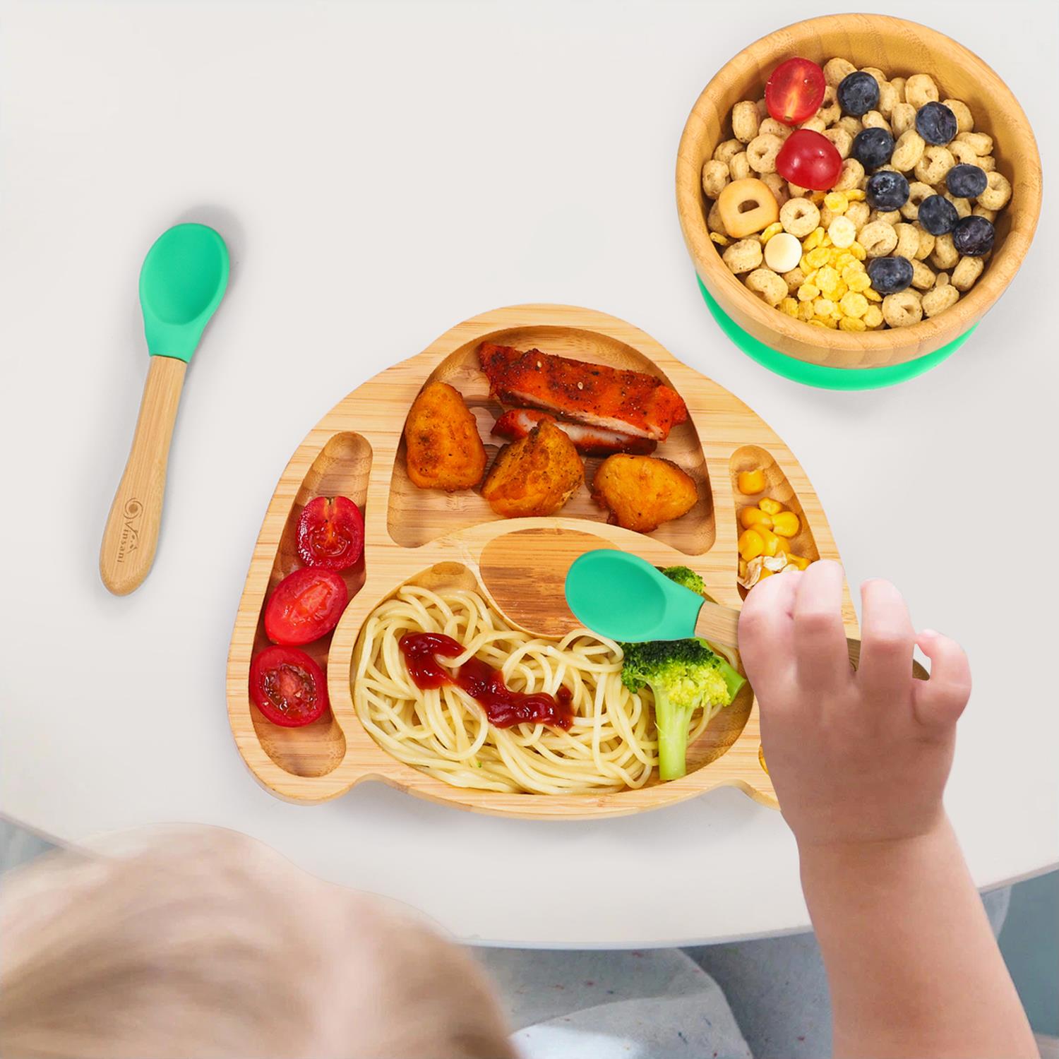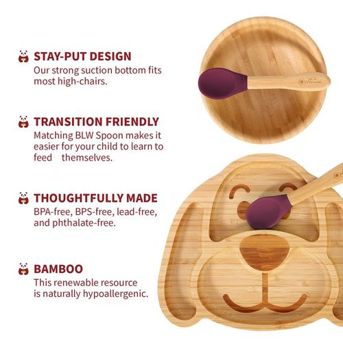 VINSANI Bamboo Dog Plate, Bowl & Spoon Set