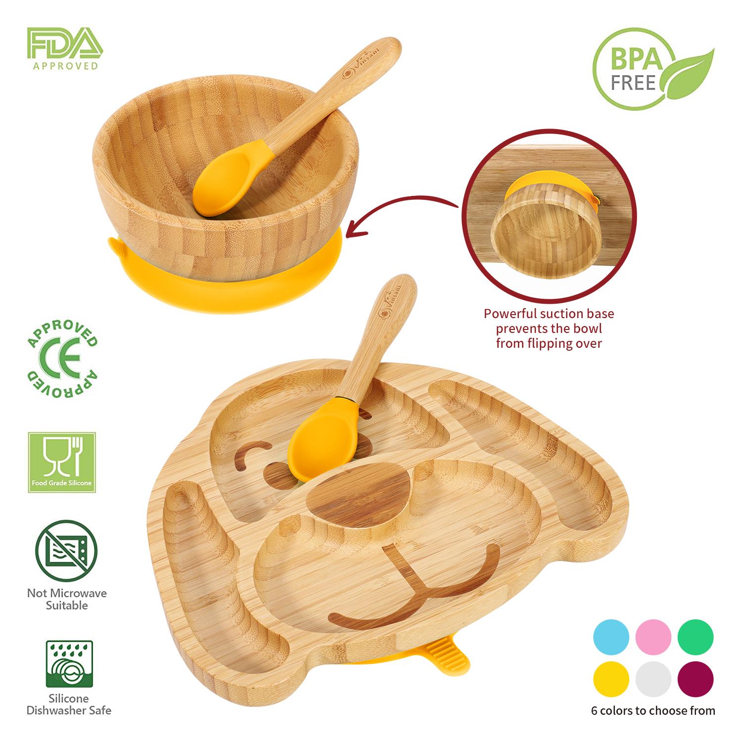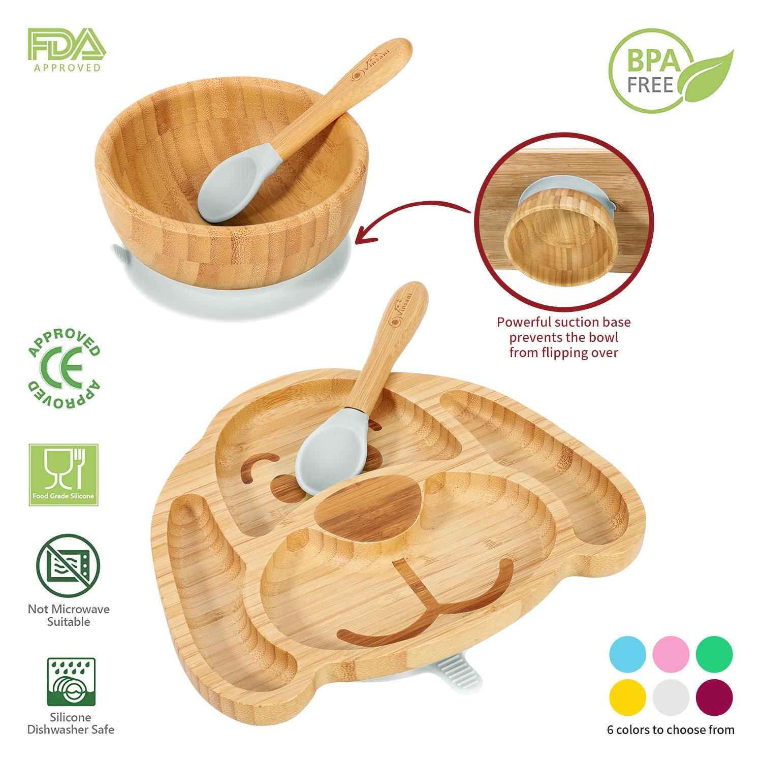 Crafted from all-natural, hypoallergenic bamboo and food-grade silicone, this set is free from BPA, phthalates, and toxins, ensuring your pet's safety during mealtime. Our set features a powerful suction base that prevents sliding and spills, allowing your pet to enjoy their meal without any mess. The silicone suction base ensures that bowls and plates remain in place, no matter how excited your pet gets!