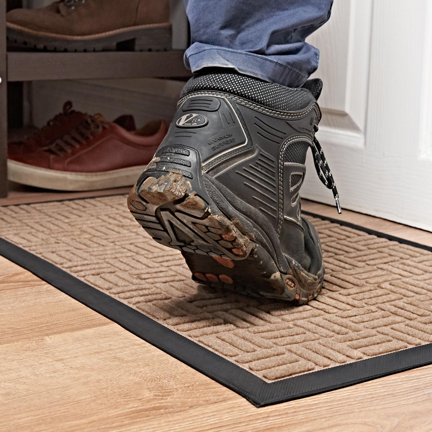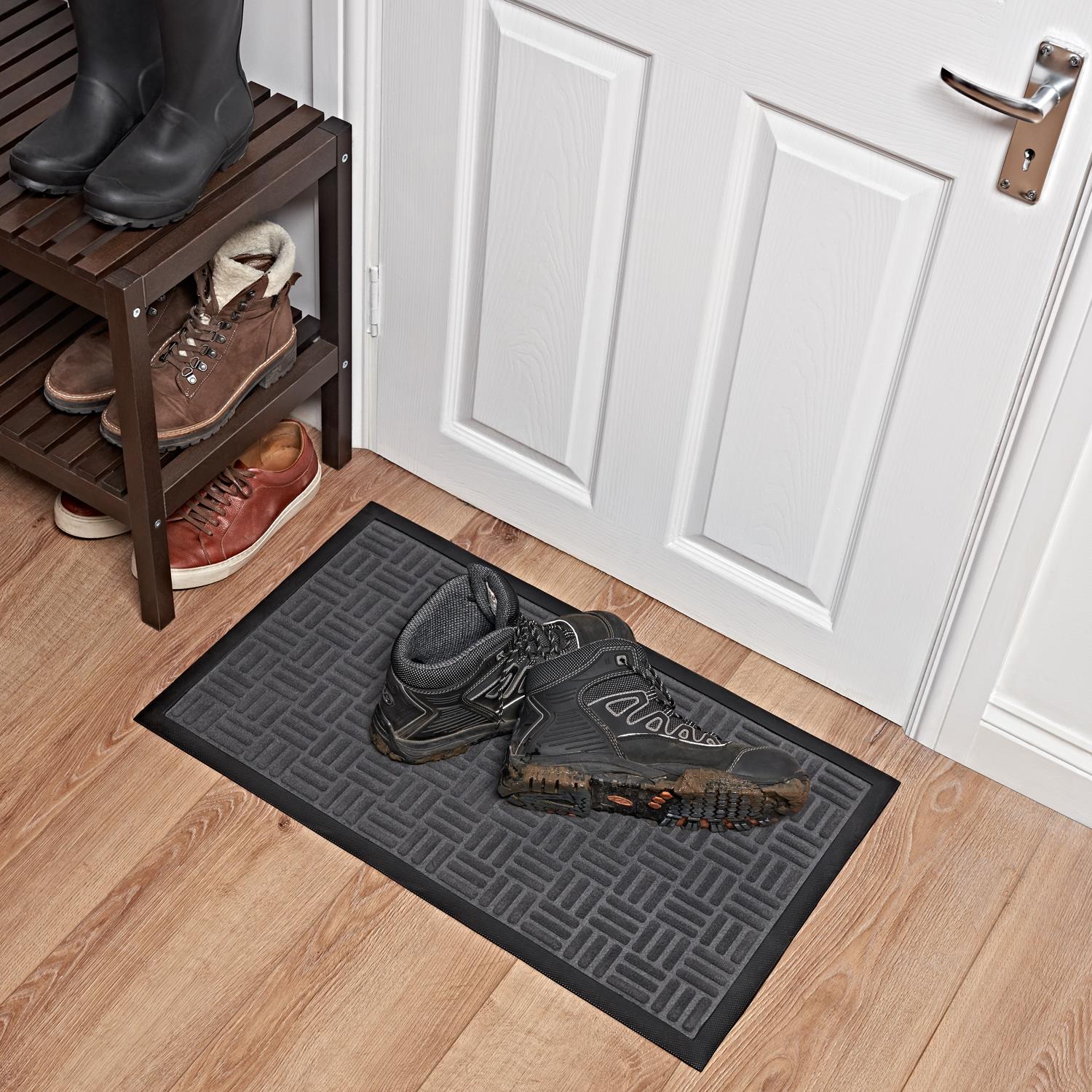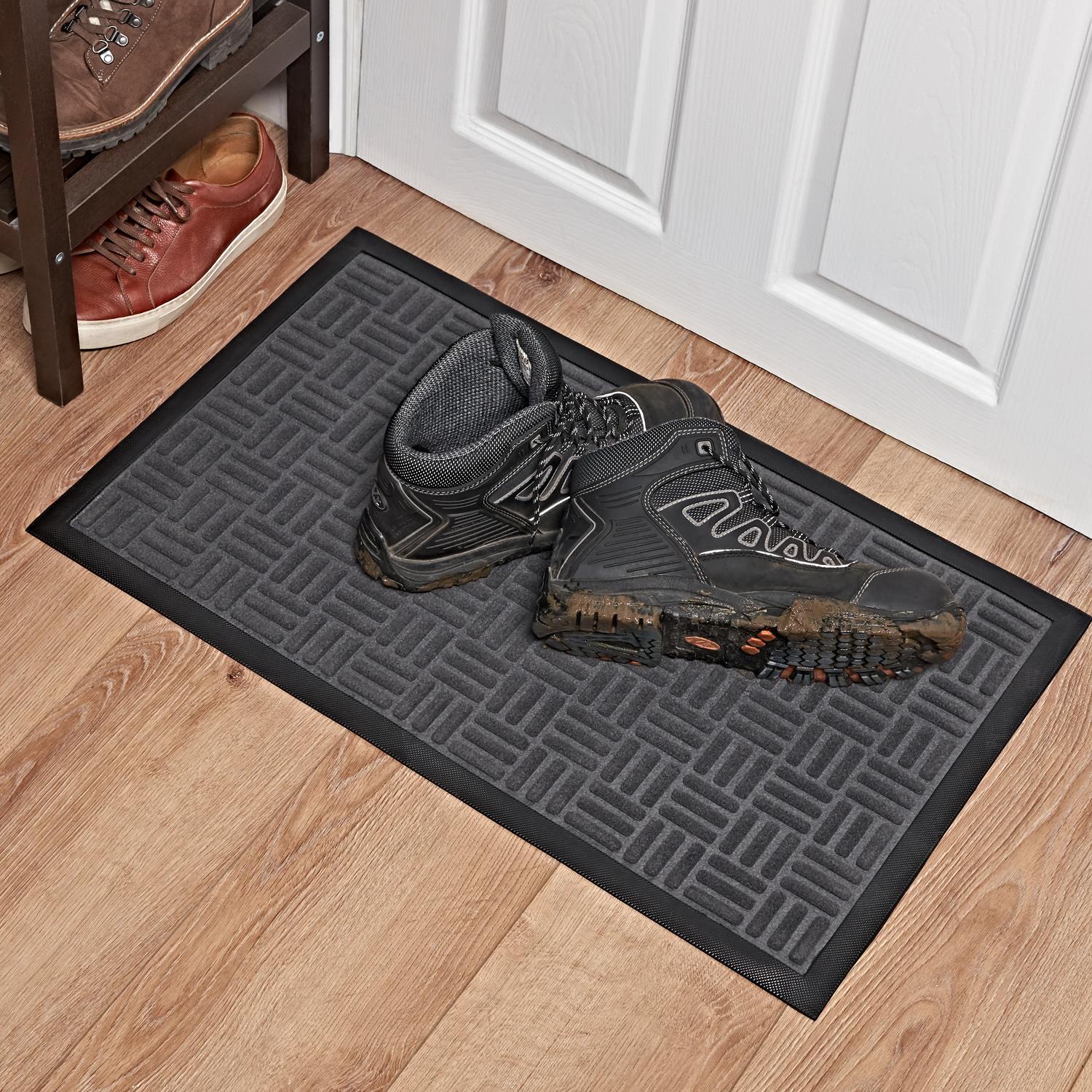 ULTRA ABSORBENT: Crafted to withstand rainy weather, the Vinsani front door mat is ultra-absorbent and won't get water-clogged. It can soak up a substantial volume of moisture, eliminating the worry of wet and muddy footprints in your home.