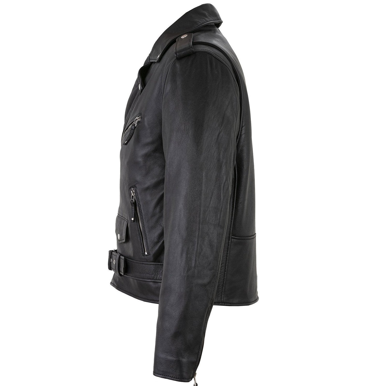 The Men's Belted Cross Zip Brando Biker Jacket in Black Leather is a timeless piece that embodies rebellion, rugged style, and sophistication. Inspired by the iconic Brando biker jacket, this classic design exudes confidence and edginess. Made with premium black leather, it offers a sleek appearance, long-lasting durability, and becomes a staple in any wardrobe.