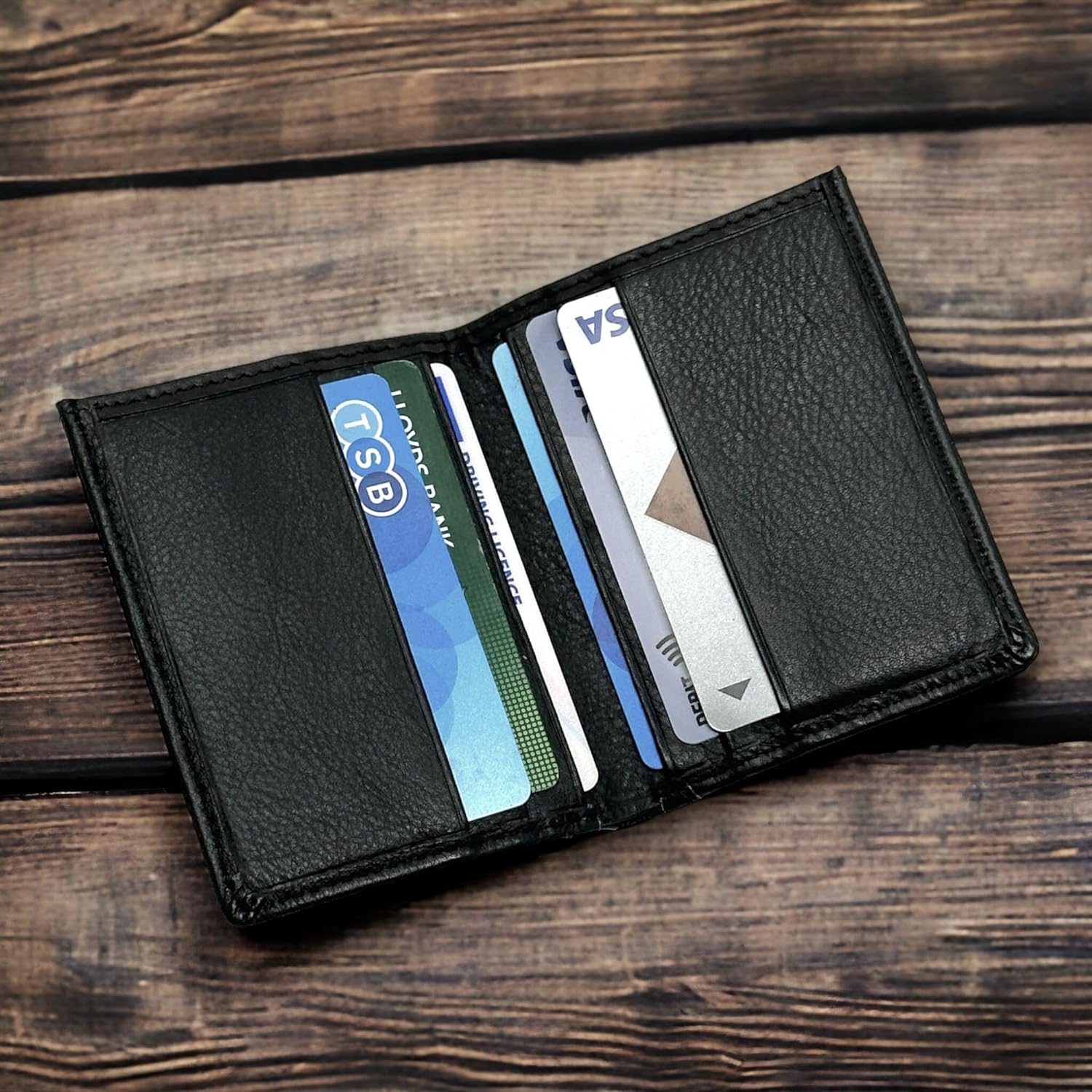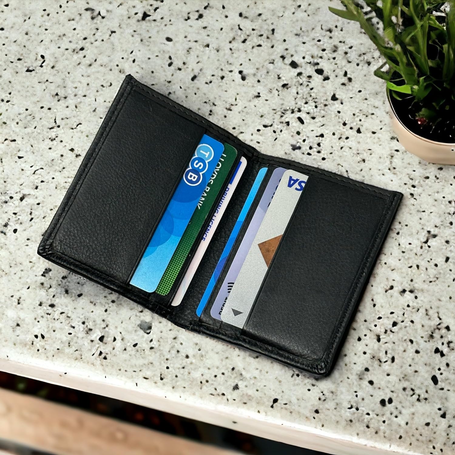 Introducing the RAS Mens Small Black Soft Real Nappa Leather Cardholder Case Wallet & Cash Pocket. This sleek and stylish wallet is designed with a minimalist slim design, perfect for those who prefer a more compact and organized way to carry their essentials.