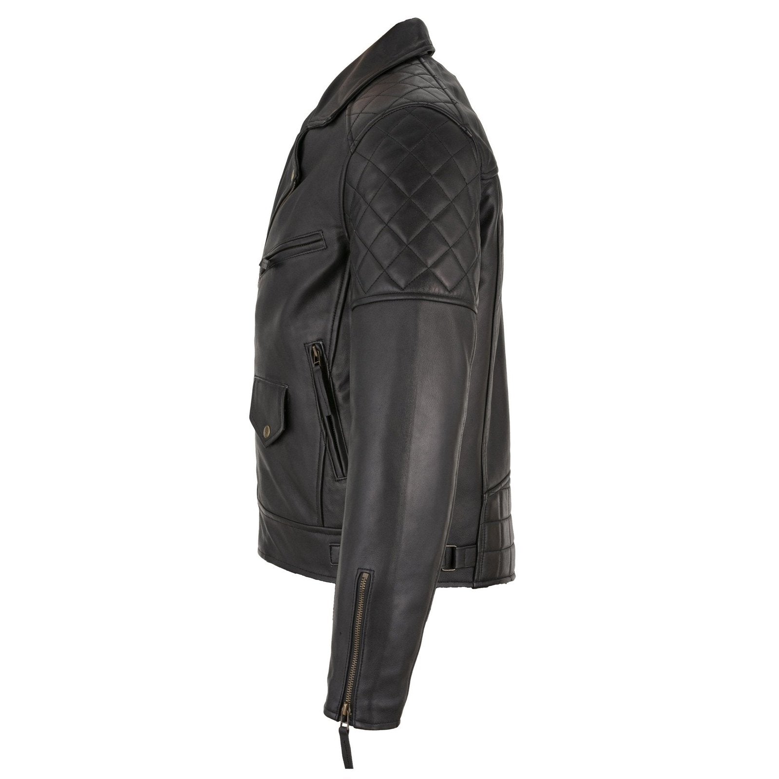 Mens Soltau Diamond Biker Style Black Leather Jacket