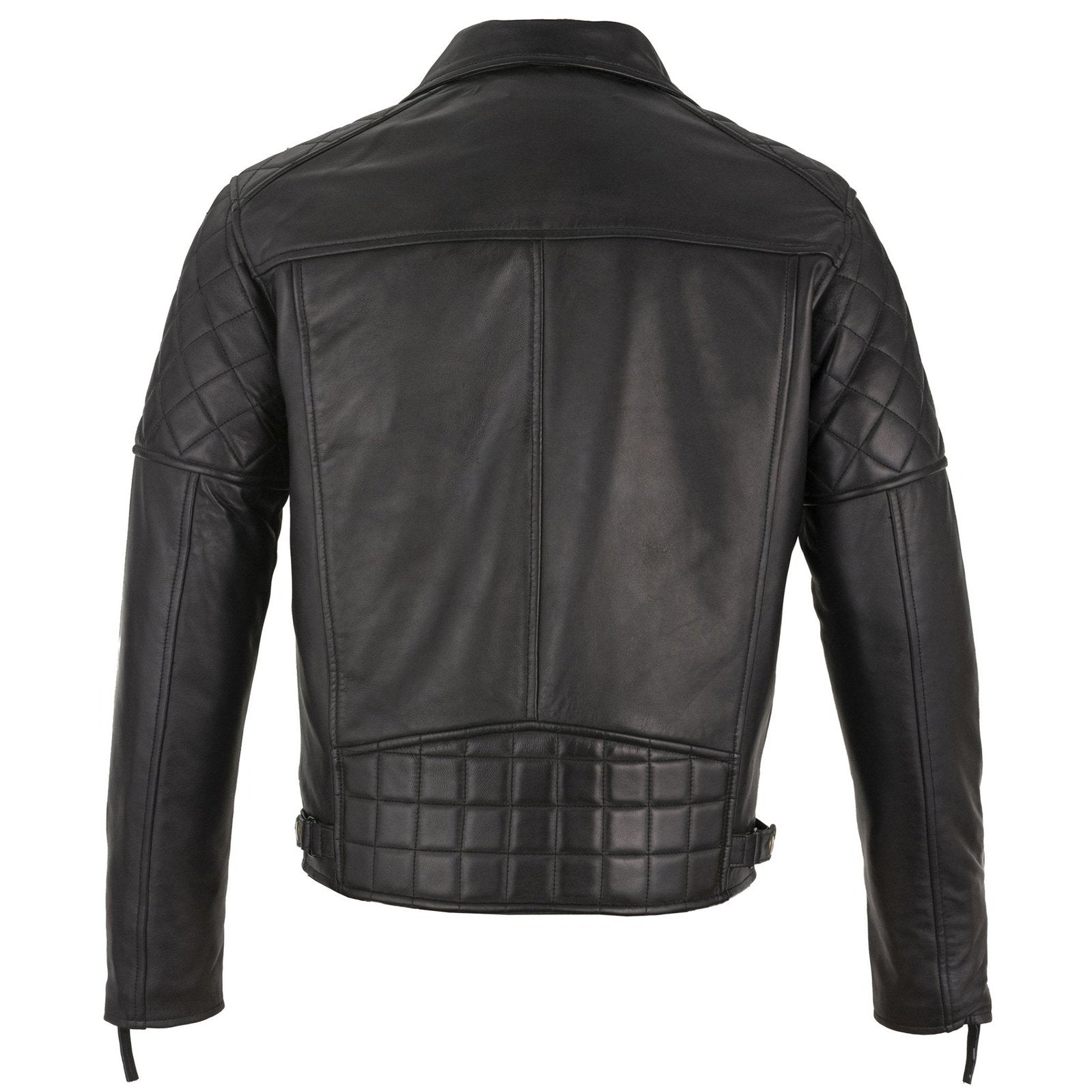 Mens Soltau Diamond Biker Style Black Leather Jacket -