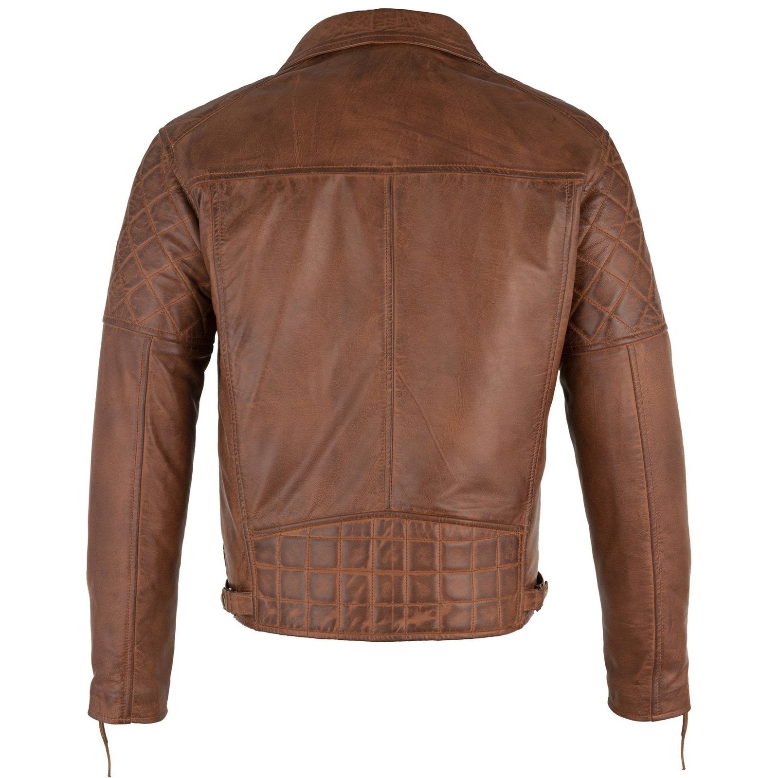 The Men's Diamond Biker Style Leather Jacket in Tan – Soltau is a bold statement piece that combines rugged biker style with timeless elegance. Crafted from high-quality genuine leather, this jacket delivers exceptional durability, comfort, and style. Designed with attention to detail, the slim-fit silhouette and diamond-quilted shoulders create a modern yet classic biker look that elevates your wardrobe.