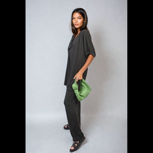 Whether you're headed to a brunch with friends š„ or a night out on the town š, the Tiana Twist Front Plunge Neckline Top and Trouser Co-ord Set is your go-to choice for making an unforgettable impression.