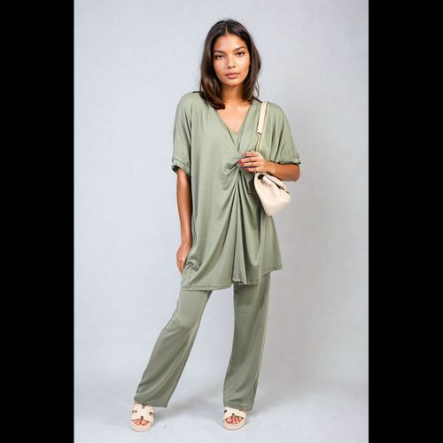 Dive into the world of effortless elegance with the Tiana Twist Front Plunge Neckline Top and Trouser Co-ord Set. This stunning ensemble is a celebration of modern femininity and sophisticated style, designed to make you stand out in any room. š