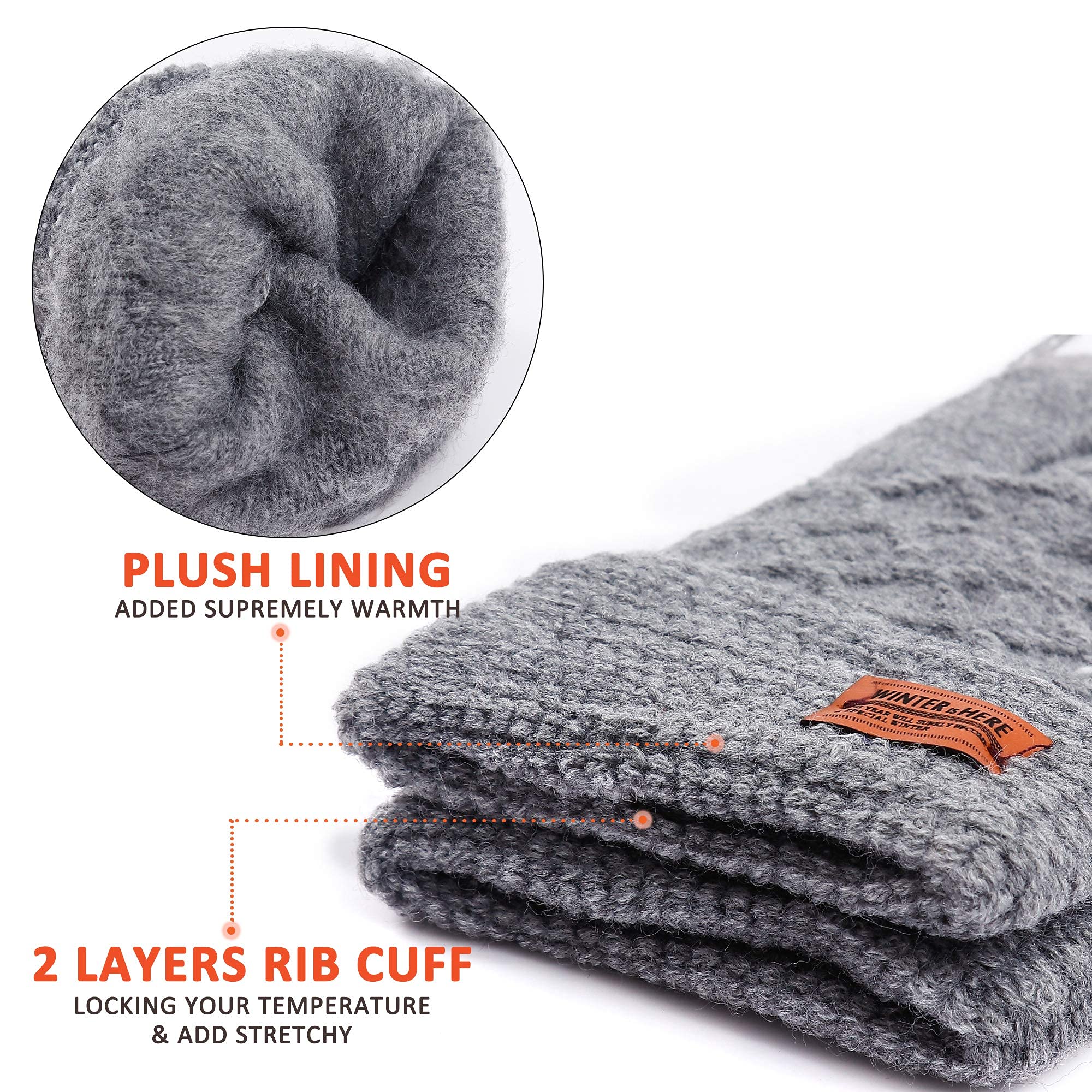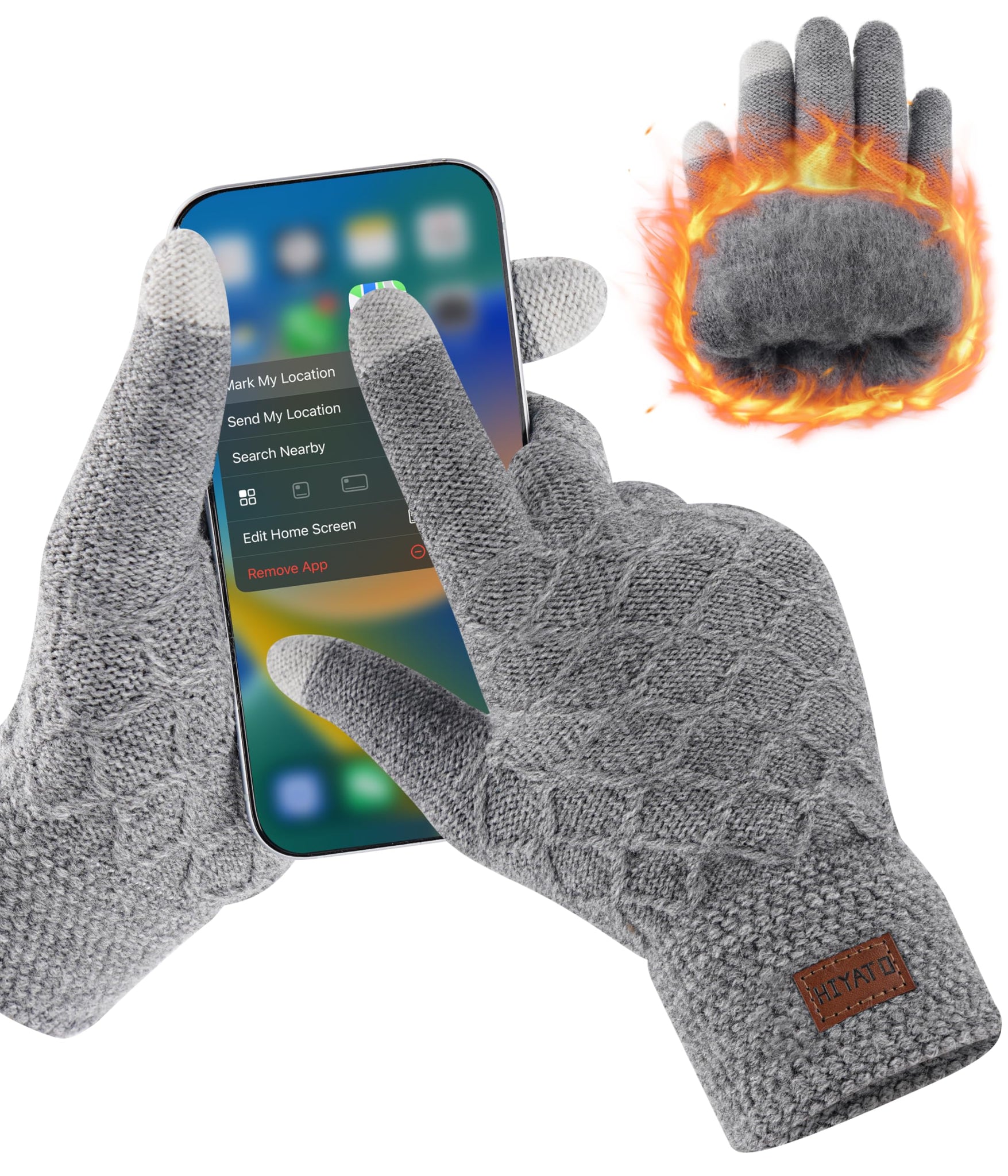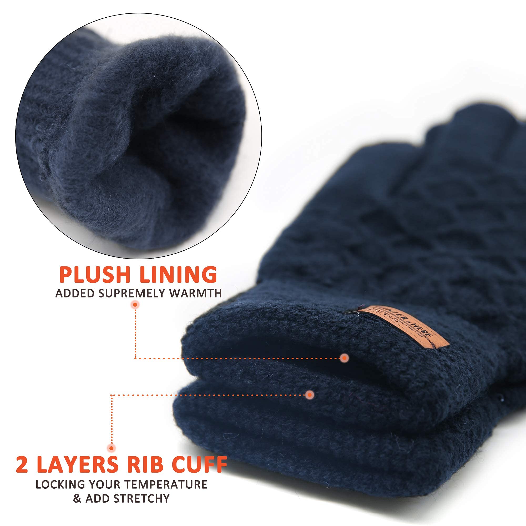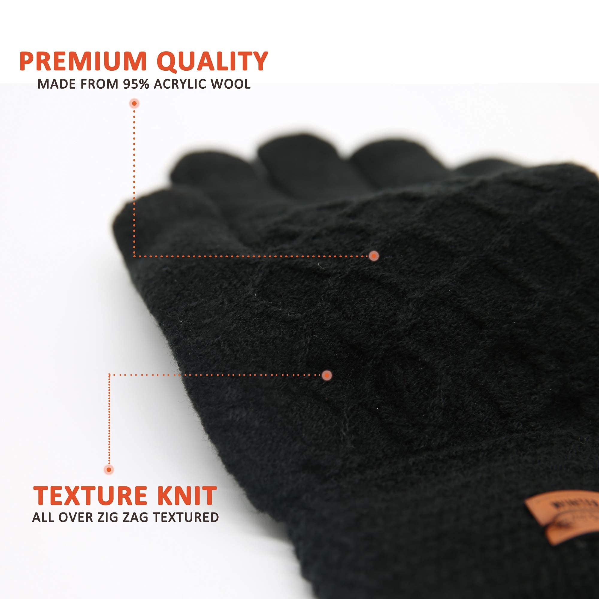 These winter gloves feature a thick knitted outer layer and a soft, brushed fleece interior that traps body heat effectively. They provide excellent insulation without bulk — ideal for fall and winter wear.